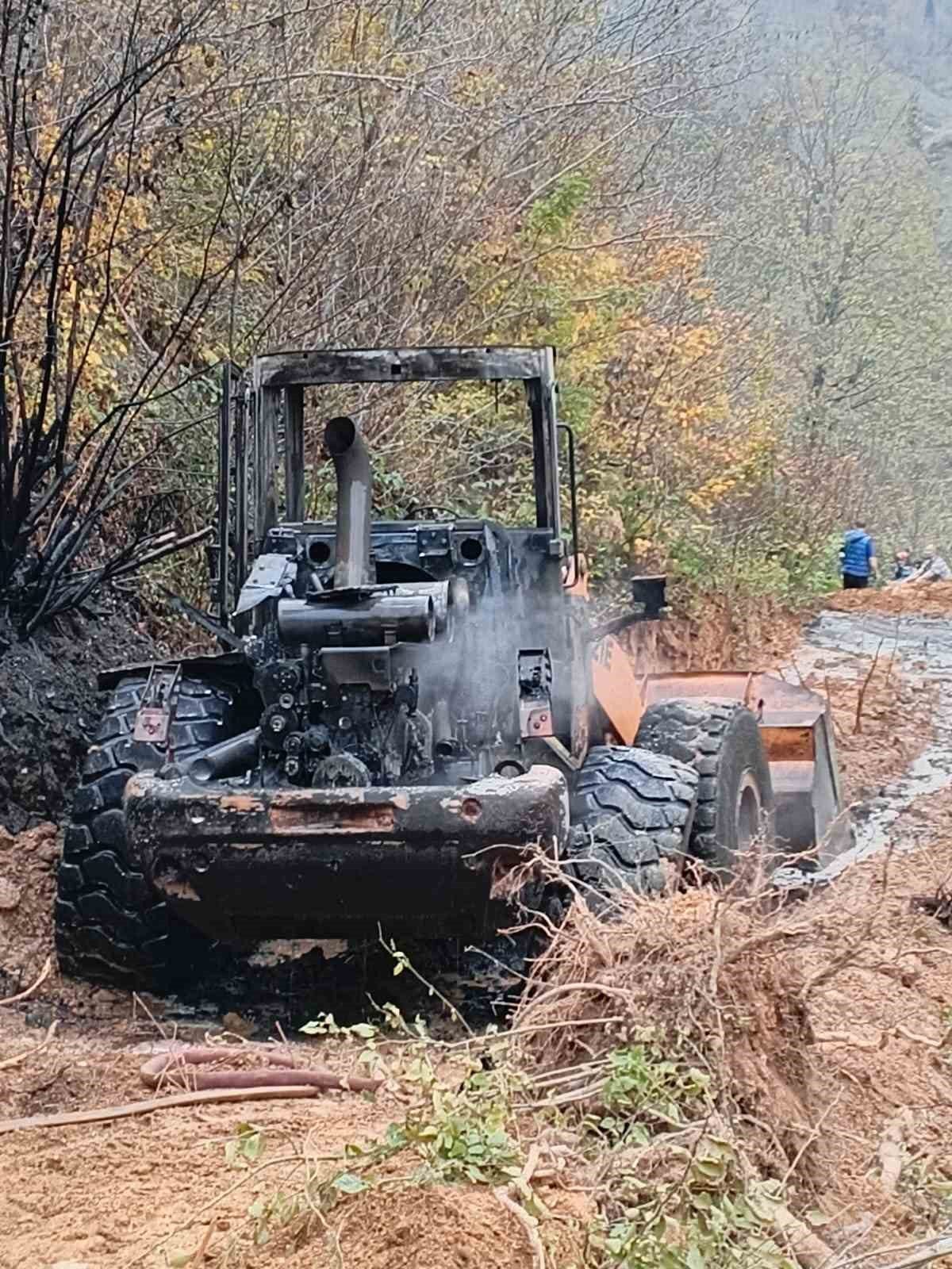 ARTVİN’İN BORÇKA İLÇESİNDE BİR İŞ MAKİNESİ YANARAK KULLANILAMAZ HALE GELDİ. O ANLAR İSE CEP TELEFONU KAMERASINA YANSIDI.