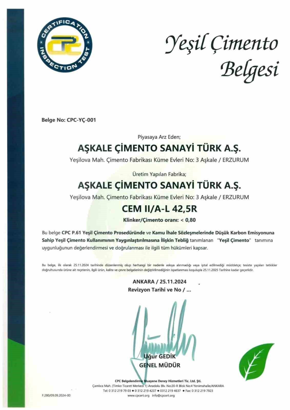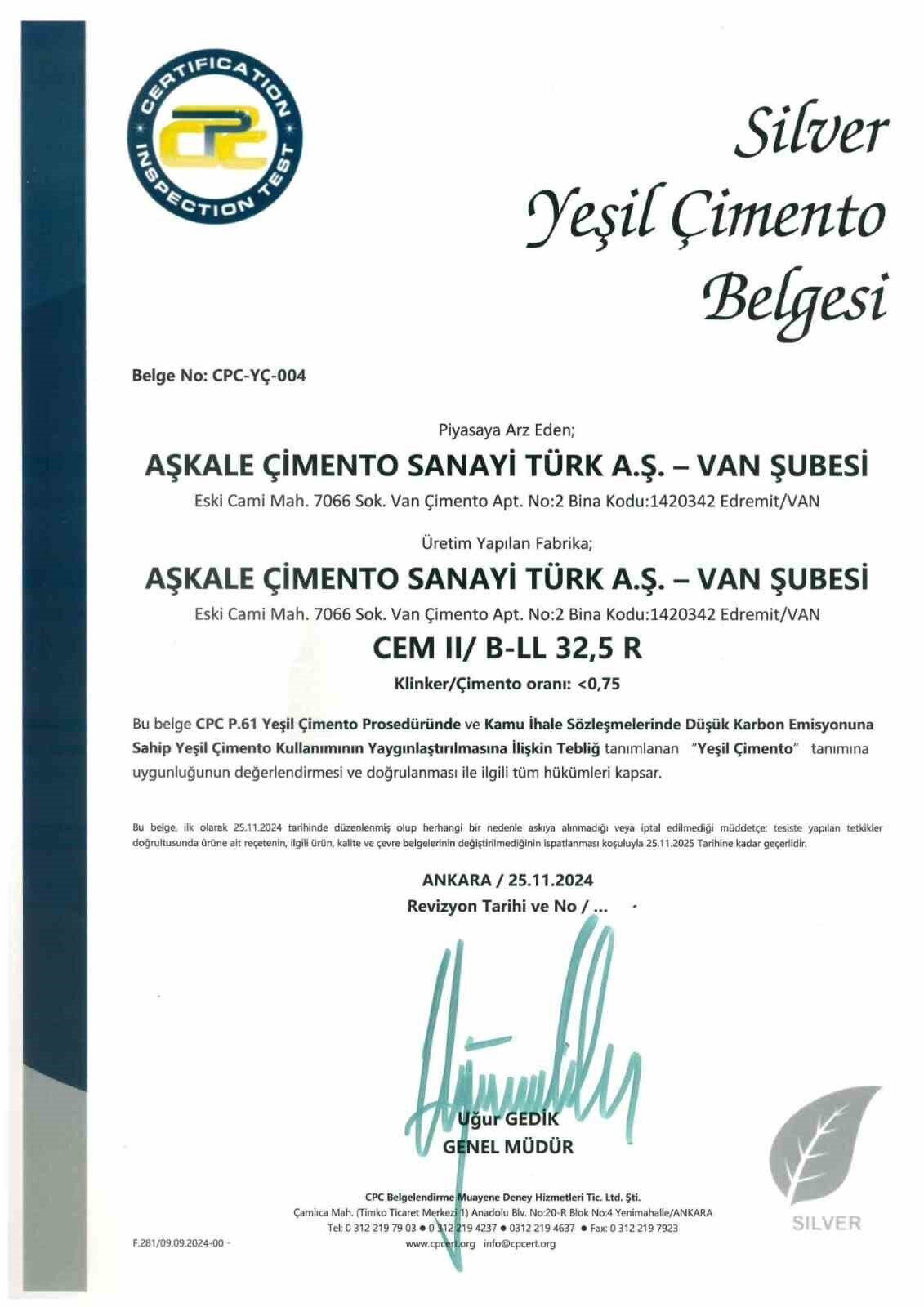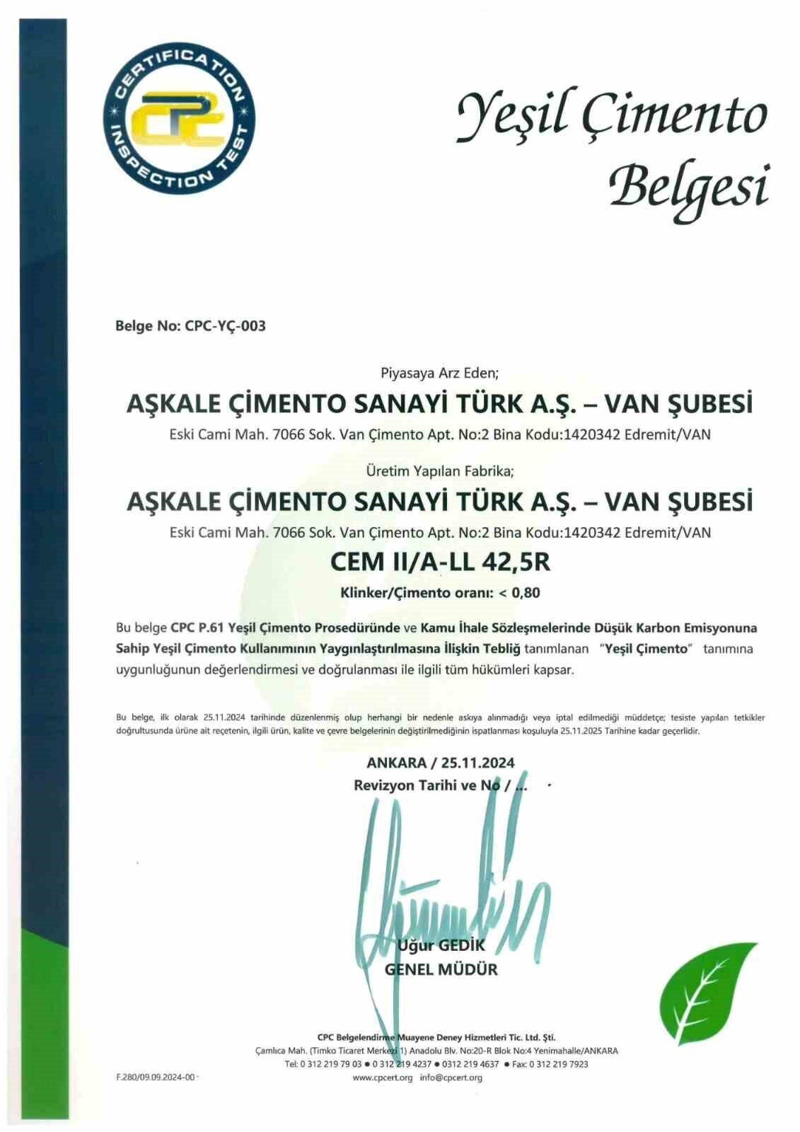 Yapılan açıklamada son günlerde, Gümüşhane ve Van’da faaliyet gösteren fabrikalarla ilgili olarak, çevreye zarar verildiği ve bölgeye yoğun toz yayıldığı yönündeki haberlerden ötürü kamuoyunu bilgilendirme ihtiyacı hasıl olduğu ifade edilerek, “Aşkale Çimento; çevreye ve topluma karşı sorumluluğunun bilinciyle hareket ederek, kurulduğu ilk günden bu yana faaliyetlerini hem ulusal çevre mevzuatına hem de uluslararası standartlara uygun şekilde yürütmektedir. Gümüşhane ve Van fabrikaları Aşkale Çimento tarafından ilk satın alındığında, oldukça eski teknolojiyle faaliyet gösterdikleri için, her bir fabrikaya 100’er milyon doların üstünde yatırım gerçekleştirilmiştir. Bu fabrikalar Aşkale Çimento bünyesine katıldıktan sonra teknolojik olarak dünya standartlarında modern birer tesis haline getirilmiş olup, çevreye duyarlı yeşil çimento sertifikasını 2024 yılında almaya hak kazanan Türkiye’deki ilk çimento grubu Aşkale Çimento’dur” denildi.