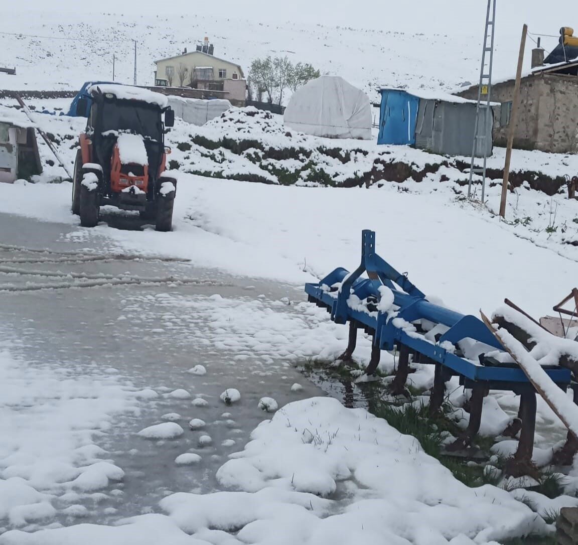 Tarlasının ekinini ekmek için hazırlanan çevredeki vatandaşlar yağan kar ile birlikte ekinlerini ekemediler.