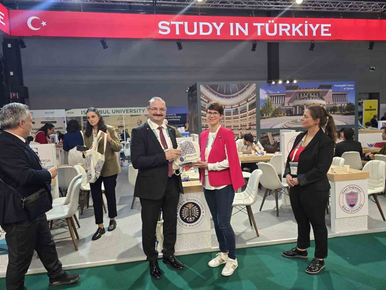 Öte yandan fuar kapsamında; Türkiye Cumhuriyeti’nin Stockholm Büyükelçisi Yönet Can Tezel, Türkiye Ulusal Ajansı Başkanı İlker Astarcı, Stockholm Eğitim Müşaviri Ümare Altun ile dünyanın önde gelen üniversite ve eğitim kurumu yöneticileri Atatürk Üniversitesi standını ziyaret ederek Rektör Prof. Dr. Ahmet Hacımüftüoğlu ile görüş alışverişinde bulundu.