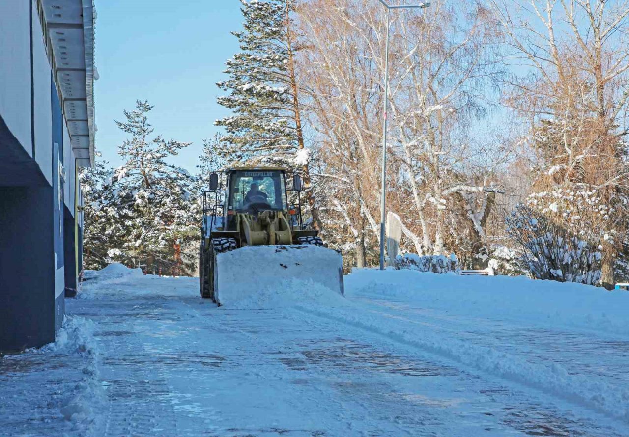 Rektör Hacımüftüoğlu ayrıca, karla mücadele çalışmalarında görev alan tüm personele teşekkür ederek, gösterilen özverili çalışmanın üniversitenin kurumsal sorumluluk anlayışının bir yansıması olduğunu vurguladı.