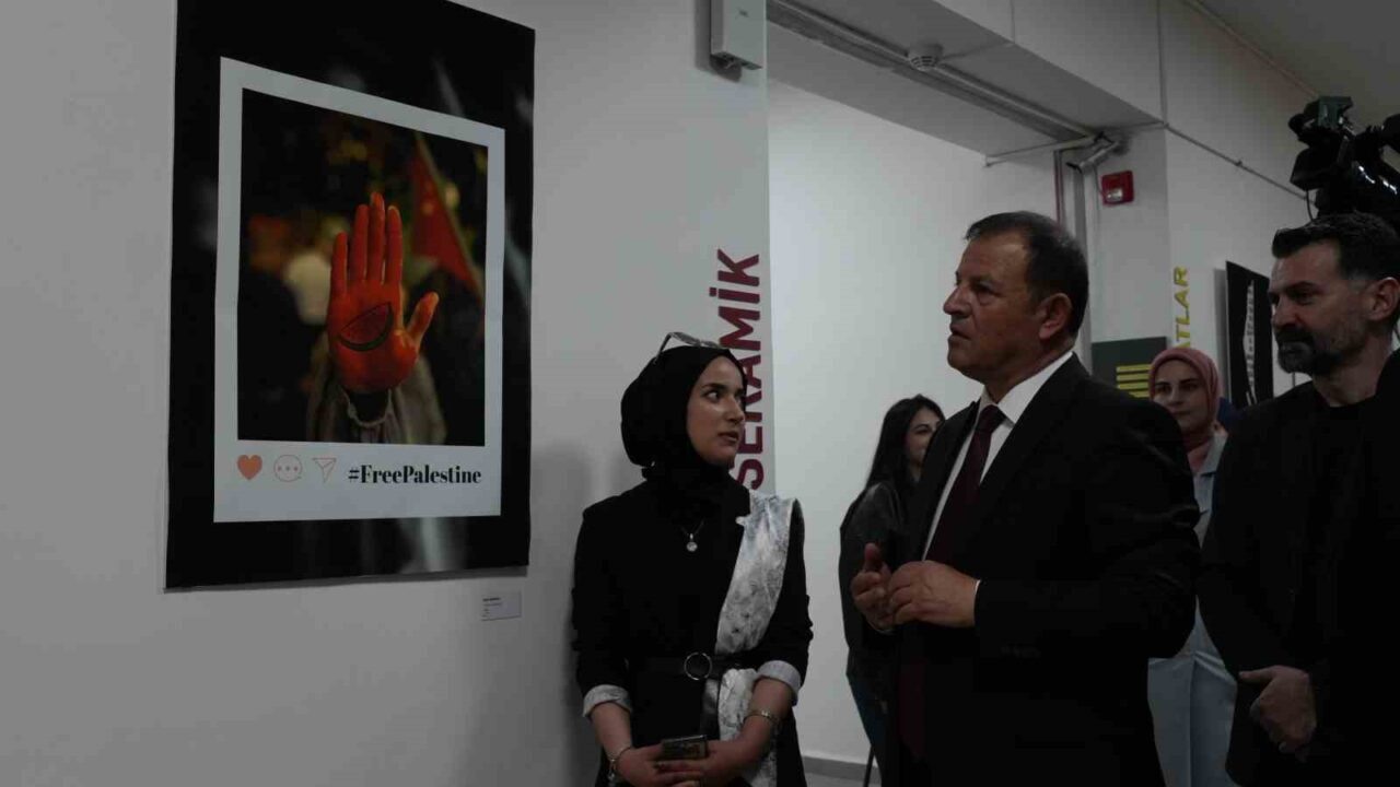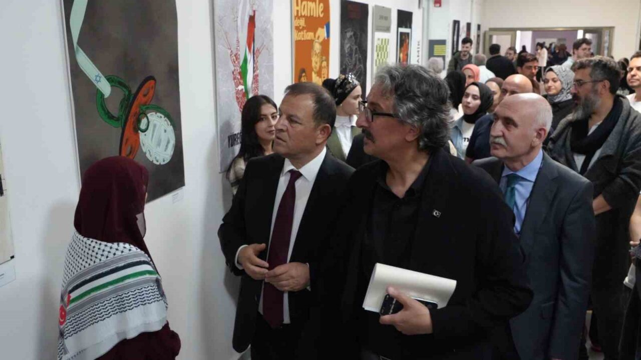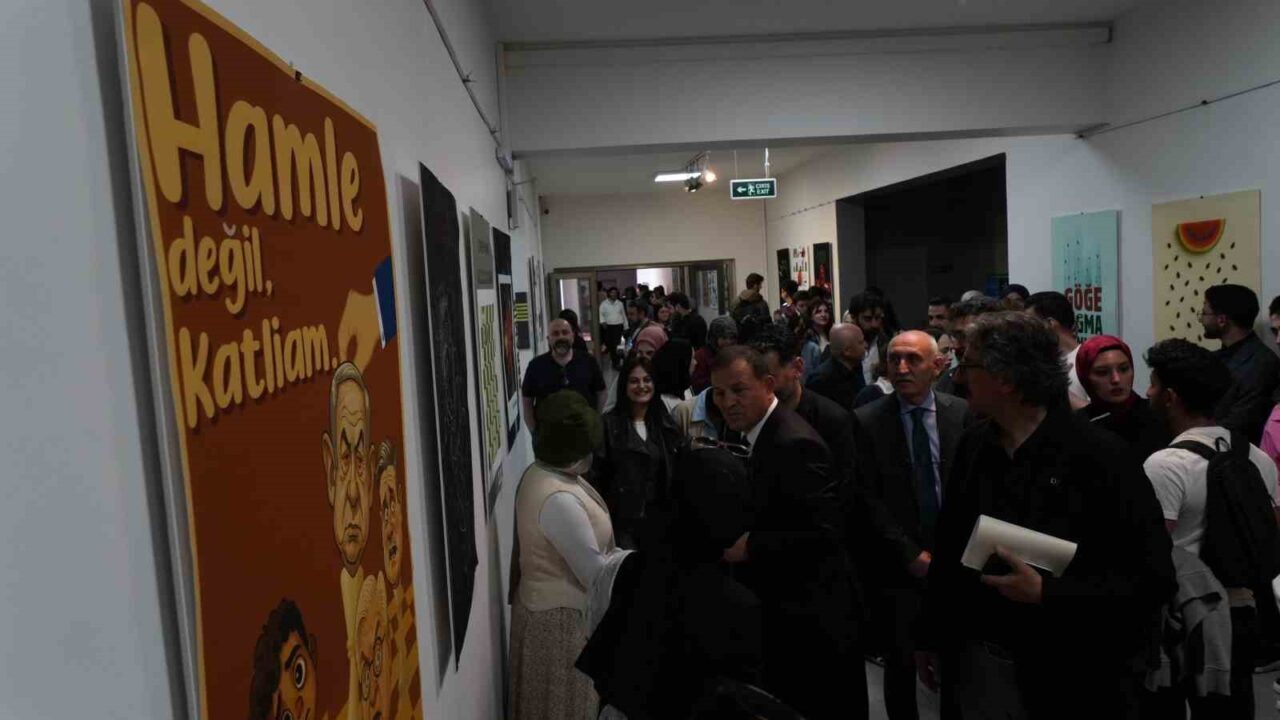Atatürk Üniversitesi Güzel Sanatlar Fakültesi tüm bölümlerin katılımıyla hazırlanan karma sergide, Gazze’de yaşanan insanlık dramına sanatla tanıklık edildi.