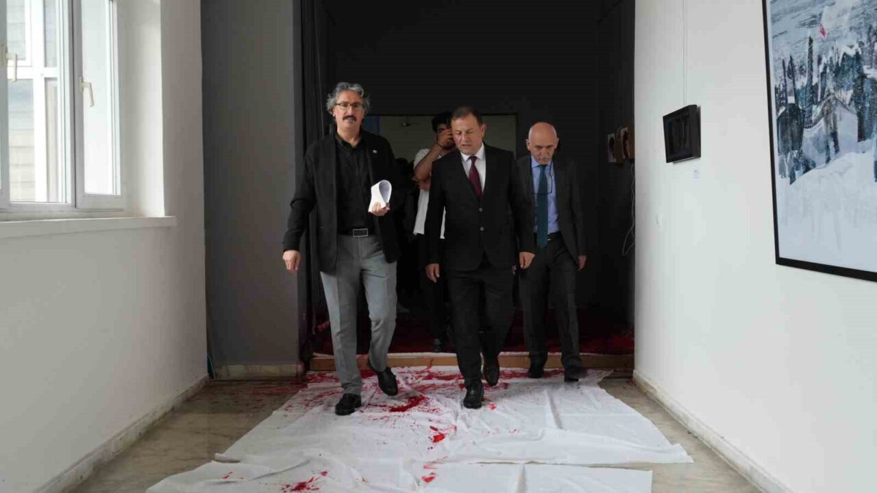 Atatürk Üniversitesi Güzel Sanatlar Fakültesi öğrenci ve hocaların katkılarıyla önemli iki etkinliğe imza atıldı. Gazze: Bir Soykırımın Anatomisi etkinliğe Gazze’deki insanlık ayıbına dikkat çekilmek istenirken, Erzurum Temalı Karma Sergisi ile şehrin kültürel ve doğal zenginliklerine sanatla bakmayı hedefledi. Açılışta Güzel Sanatlar Fakültesi Sahne Sanatları Bölümü Öğretim Görevlisi Dr. Selim Cinisli’nin, yere serdiği beyaz örtü üzerine kırmızı boya serperek “Sahiplenilmeyen İzler” konulu senografik performans sergiledi. Atatürk Üniversitesi Rektör Yardımcısı Prof. Dr. Hasan Yılmaz, üniversitelerin topluma bilgi sunan, araştırma yapılan özellikle de güncel olaylara vurguda bulunan yerler olduğunu ifade ederek, “Çok değerli öğrencilerimizin değerli eserlerini gördük. Tiyatral bir gösteri ile Filistin’de olan zulümlere değerli öğrencilerimiz ortaya koymaya çalıştılar. Aynı şekilde sunmuş oldukları eserlerle umutlarımızın tükenmediğini bize göstermeye çalıştılar. Biz bu sergiyi gördükten sonra toplumumuzun bu duyarlılığını görünce genç arkadaşlarımızla geleceğe daha umutla bakmayı öğrendik” dedi.