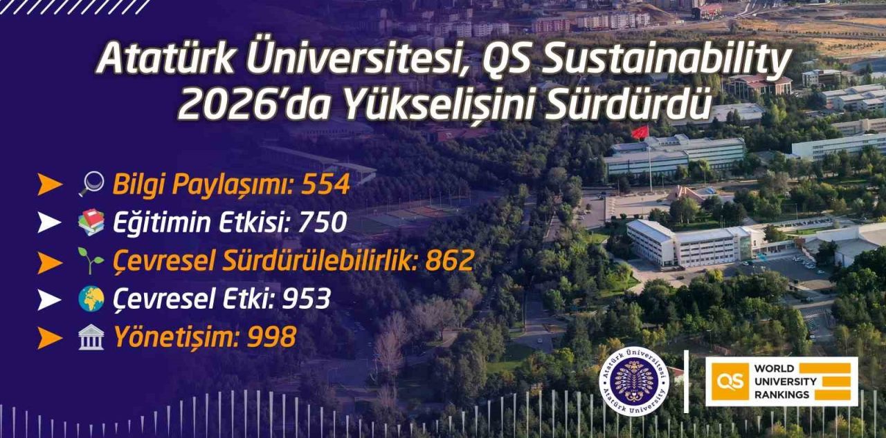 Atatürk Üniversitesi; çevresel, yönetişimsel ve toplumsal sürdürülebilirlik performanslarını değerlendiren QS Sustainability 2026 sonuçlarında dikkat çeken bir yükseliş kaydederek uluslararası alanda konumunu güçlendirdi. Bu doğrultuda ilk kez 2025 yılında QS (Quacquarelli Symonds) sıralamasına giren Atatürk Üniversitesi, 2026 sıralamasında da önemli bir başarı gösterdi.