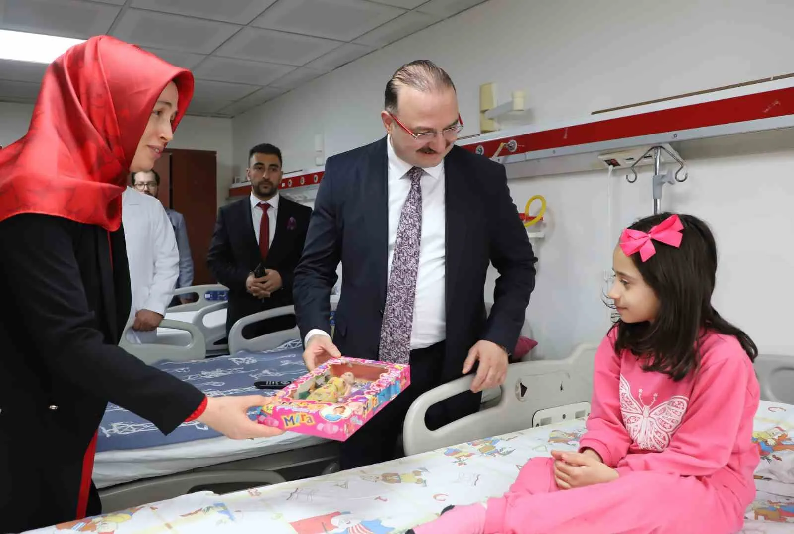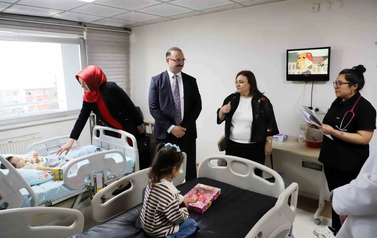 Rektör Prof. Dr. Ahmet Hacımüftüoğlu, bayramların birlik, beraberlik ve dayanışma duygularının pekiştiği özel zamanlar olduğunu belirterek, “Sağlık sorunları nedeniyle bayram sevincini hastane ortamında yaşamak zorunda kalan miniklerimizi ve ailelerini ziyaret ederek yanlarında olduğumuzu hissettirmek istedik. Onların mutluluğu, bizim de mutluluğumuzdur. Tedavi süreçlerinin en kısa sürede olumlu sonuçlanmasını temenni ediyor, hepsine acil şifalar diliyorum” dedi.