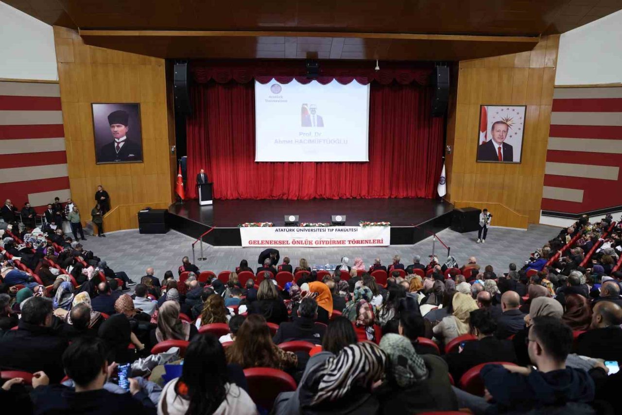 Atatürk Üniversitesi Tıp Fakültesi 1. sınıf öğrencilerine yönelik Geleneksel Önlük Giyme Töreni, 15 Temmuz Milli İrade Salonunda yoğun katılımla gerçekleştirildi. 2025-2026 Akademik Dönemi itibarıyla üniversite hayatına adım atan 316 öğrenci, hekimlik yolculuklarının ilk ve en anlamlı sembollerinden biri olan beyaz önlüğü giymenin gururunu yaşadı.