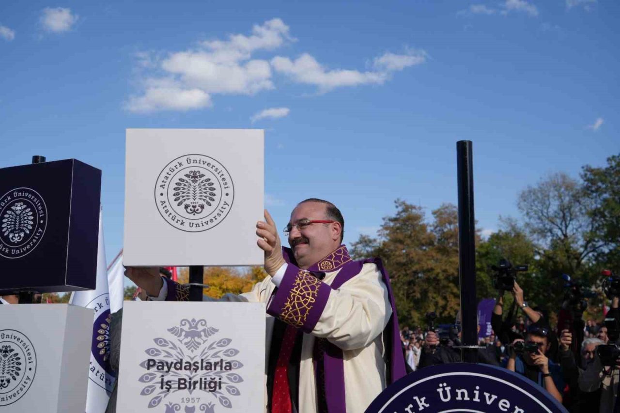 Bugün Atatürk Üniversitesinin; 14 bini ön lisans, 38 bini lisans, 8 bini yüksek lisans ve 2 bini aşkın doktora öğrencisiyle toplamda 63 bin öğrenciye ev sahipliği yaptığını anlatan Prof. Dr. Ahmet Hacımüftüoğlu, “Açık ve uzaktan öğretim programlarımızda yer alan 578 bin öğrencimizle birlikte bu sayı 640 bine ulaşmaktadır. 94 farklı ülkeden 7 bin uluslararası öğrencimizin de aramıza katılmasıyla, üniversitemiz adeta kültürlerarası bir buluşma noktası haline gelmiştir. 23 fakültesi, 12 meslek yüksekokulu, 1 konservatuvarı, 1 yüksekokulu, 9 enstitüsü ve 44 araştırma merkeziyle eğitim, bilim ve kültür alanında güçlü bir ekosistem oluşturan Atatürk Üniversitesi, 2 bin 700’e yakın bilim insanı ve 750 bini aşan mezunuyla ülkesine ve insanlığa değer katmaya devam etmektedir” dedi.