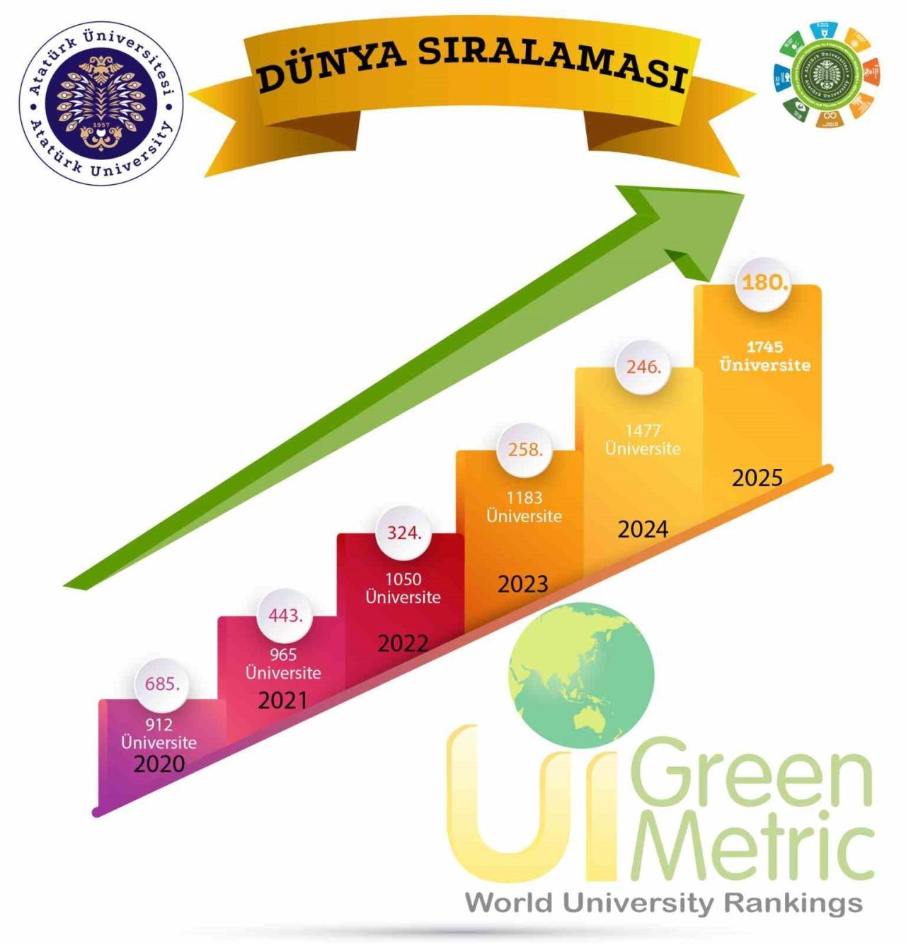 Başvuru süreci 2021 yılından bu yana Atatürk Üniversitesi Çevre Sorunları Uygulama ve Araştırma Merkezi tarafından yürütülen UI GreenMetric sıralamasının 2025 sonuçları, Tayvan National Chi Nan University (NCNU) ev sahipliğinde kamuoyuyla paylaşıldı. Açıklanan verilere göre Atatürk Üniversitesi, 5. yılında da istikrarlı yükselişini sürdürerek dünya genelinde 66 basamak birden ilerledi ve 180. sıraya yerleşti. Coğrafi konum itibarıyla Asya Kıtasında değerlendirilen üniversiteler arasında 101’inci, Türkiye’den katılan 142 üniversite arasında 18’inci, devlet üniversiteleri arasında ise 13’üncü sıraya yükseldi.