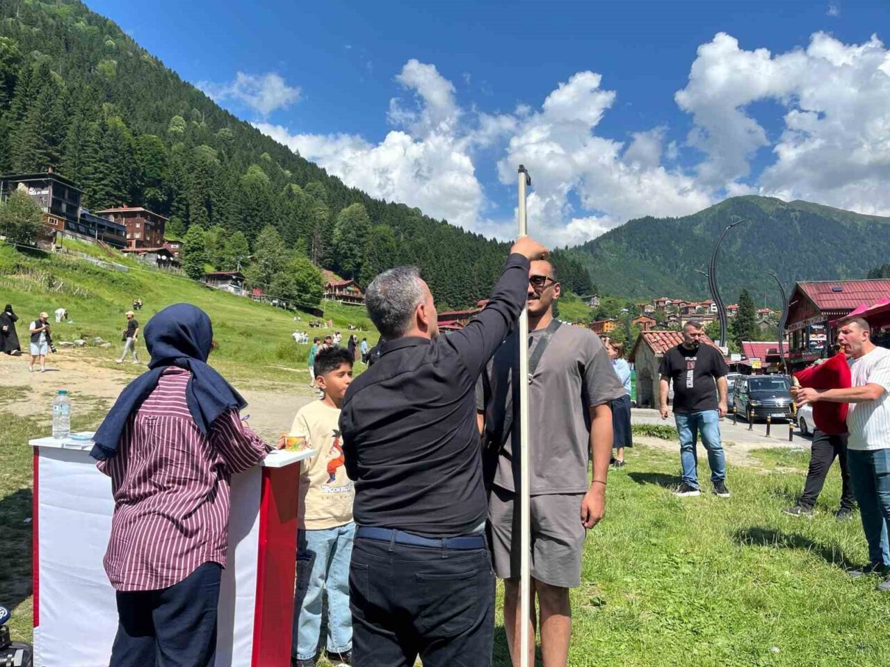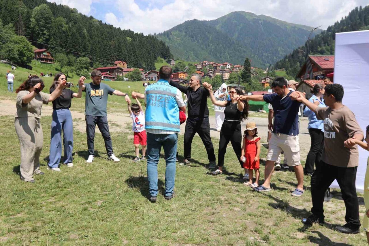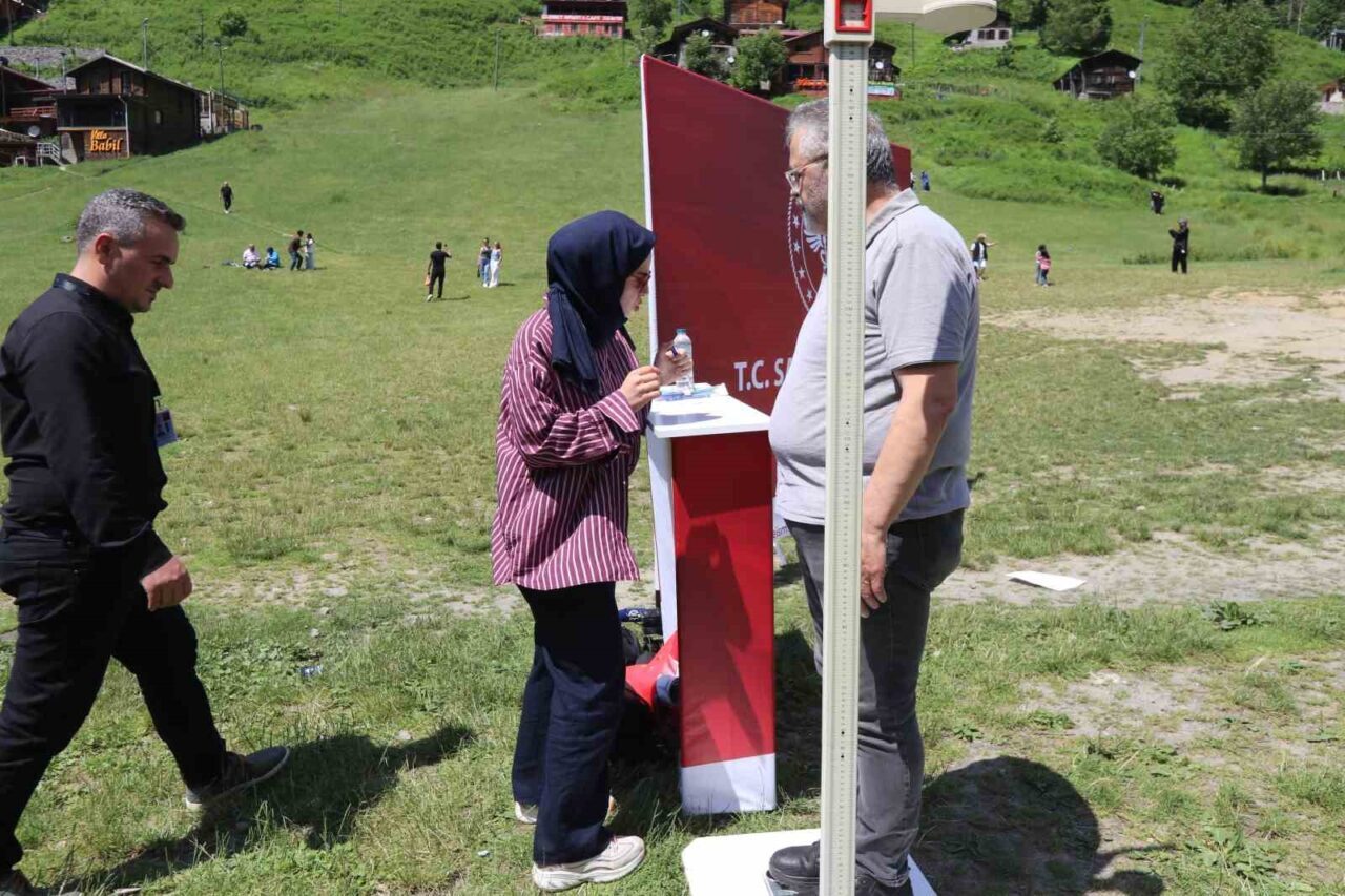 Rize’nin dünyaca ünlü Ayder Yaylası’nda “İdeal Kilonu Öğren, Sağlıklı Yaşa” projesi çerçevesinde kilosuna bakılan turistler horon halkasında birleşerek kalori yaktı.