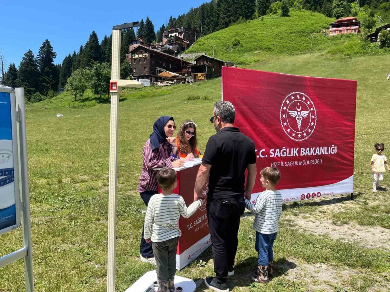 RİZE’NİN DÜNYACA ÜNLÜ AYDER YAYLASI’NDA “İDEAL KİLONU ÖĞREN, SAĞLIKLI YAŞA” PROJESİ ÇERÇEVESİNDE KİLOSUNA BAKILAN TURİSTLER HORON HALKASINDA BİRLEŞEREK KALORİ YAKTI
