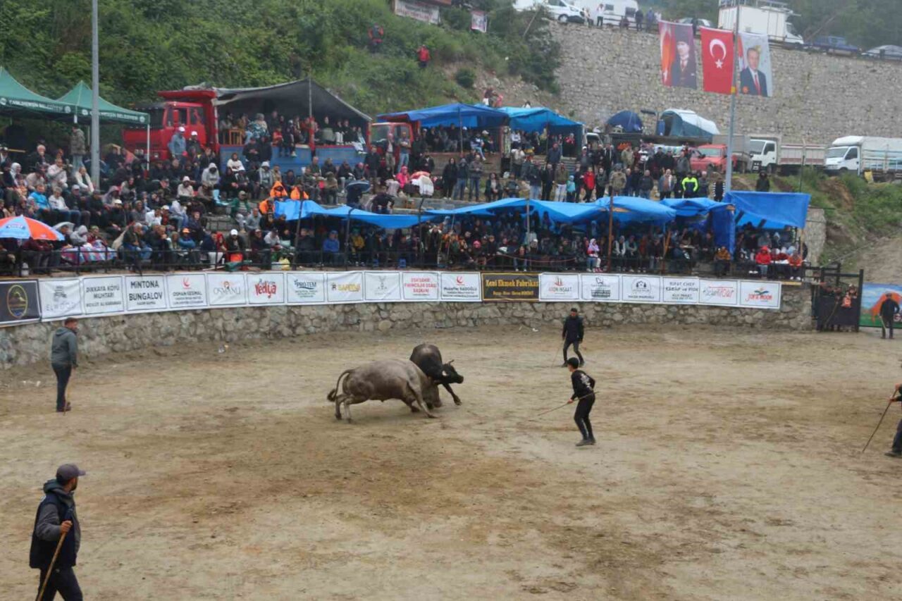 Rize’de geleneksel olarak düzenlenen boğa güreşlerinin 29’uncusu da her yıl olduğu gibi renkli görüntülere sahne oldu.