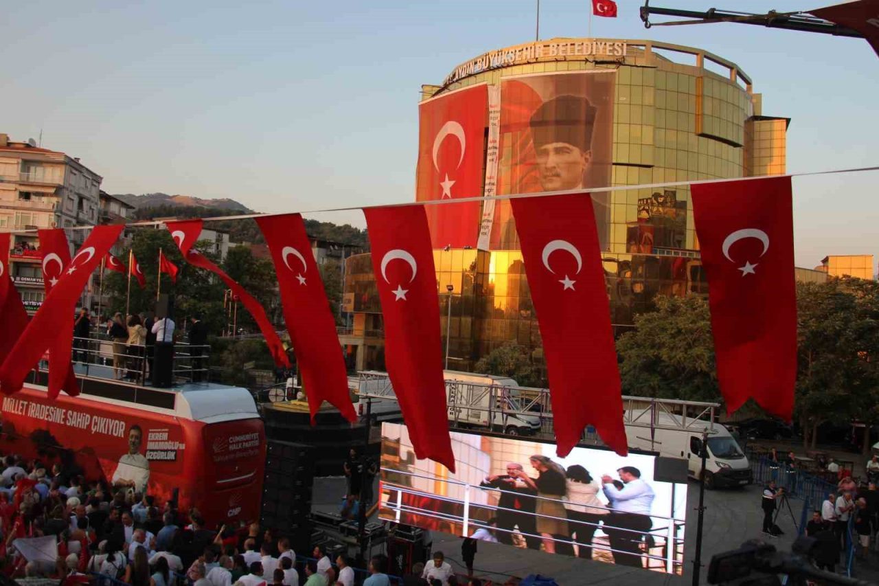 Aydın Büyükşehir Belediye Başkanı Özlem Çerçioğlu’nun 4 gün önce CHP’den AK Parti’ye geçmesinin ardından CHP Aydın İl Başkanlığı tarafından bugün CHP Genel Başkanı Özgür Özel’in katılımı ile ’Millet İradesine Sahip Çıkıyor’ adlı miting düzenlendi. Aydın Büyükşehir Belediyesi binasının ön tarafında bulunan Atatürk Kent Meydanı’nda düzenlenen miting sırasında Aydın Büyükşehir Belediyesi binasına dev bir pankart asıldı. ’İmar rantına geçit yok” yazılı dev pankart dikkat çekti.