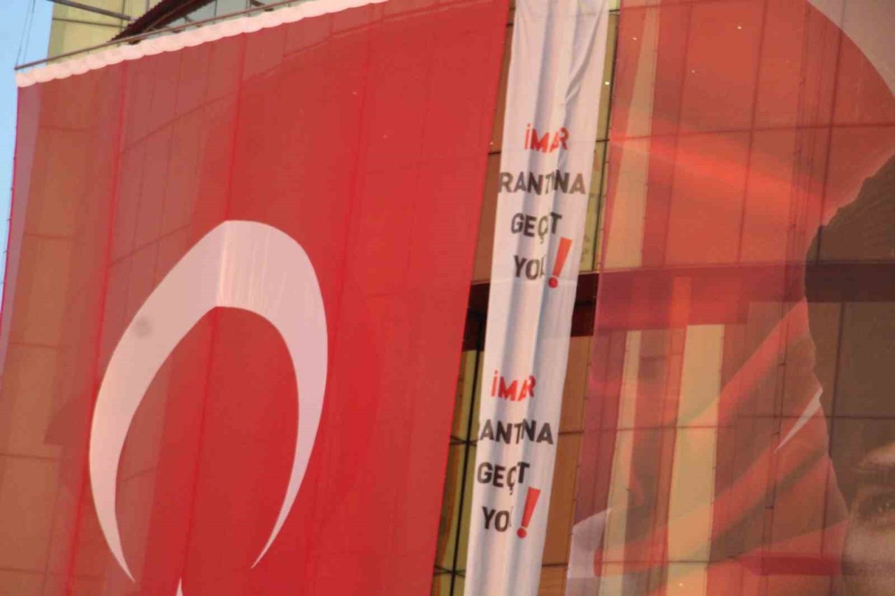CUMHURİYET HALK PARTİSİ (CHP) GENEL BAŞKANI ÖZGÜR ÖZEL’İN PARTİSİNDEN İSTİFA EDEREK AK PARTİ’YE GEÇEN ÖZLEM ÇERÇİOĞLU’NA TEPKİ GÖSTERMEK AMACIYLA AYDIN’DA DÜZENLEDİĞİ MİTİNG ÖNCESİ AYDIN BÜYÜKŞEHİR BELEDİYESİ BİNASINA “İMAR RANTINA GEÇİT YOK” YAZILI DEV BİR PANKART ASILDI.
