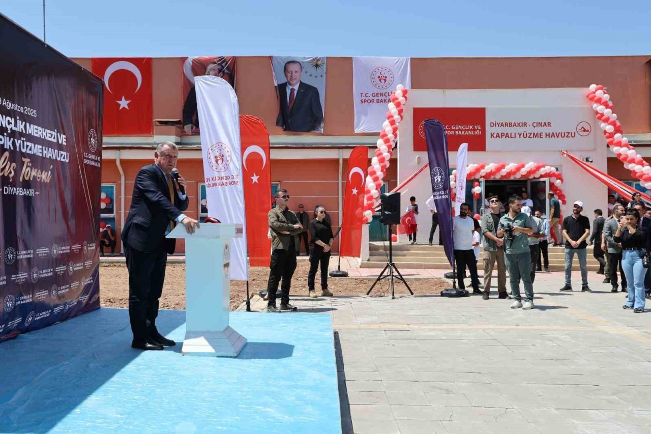 GENÇLİK VE SPOR BAKANI OSMAN AŞKIN BAK, DİYARBAKIR’DA ‘ÇINAR GENÇLİK MERKEZİ VE YARI OLİMPİK KAPALI YÜZME HAVUZU AÇILIŞ TÖRENİ’NDE, “CUMHURBAŞKANIMIZIN EN BÜYÜK PROJELERİNDEN BİRİ OLAN ‘TERÖRSÜZ TÜRKİYE PROJESİ’ KAPSAMINDA, GENÇLİK VE SPOR BAKANLIĞI OLARAK SPORUN BİRLEŞTİRİCİ VE İYİLEŞTİRİCİ GÜCÜNÜ ETKİN BİR ŞEKİLDE KULLANMAK İSTİYORUZ” DEDİ.