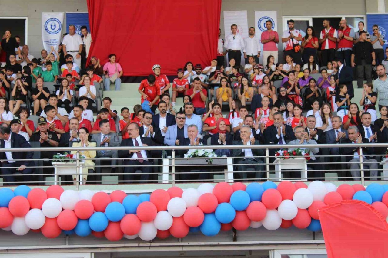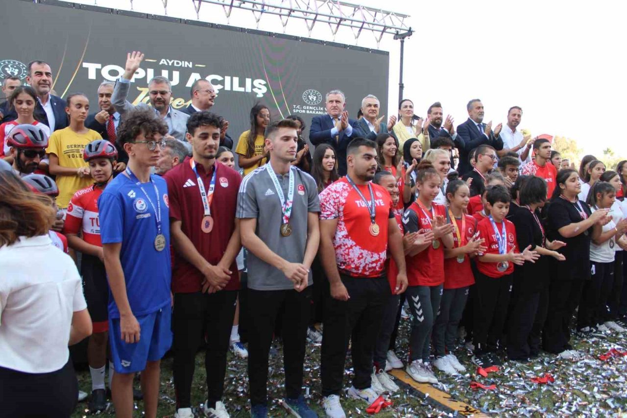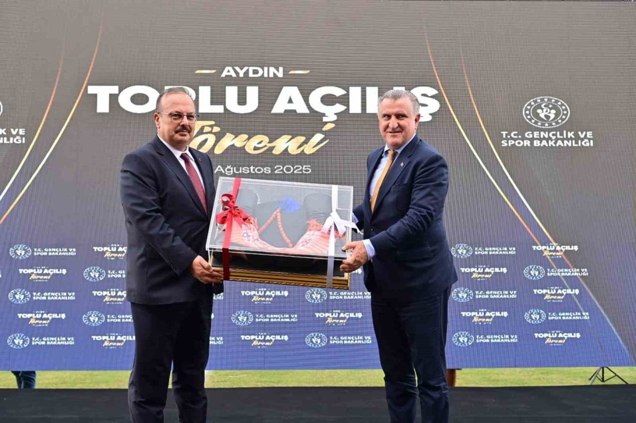 Türkiye Buluşmaları çerçevesinde Aydın’da olduklarını ve Aydın’a kazandırdıkları 23 eserin açılışını yaptıklarını kaydeden Bakan Bak, “Gençlik ve Spor Bakanlığı olarak Türkiye’nin dört bir yanında spor tesisleriyle, stadyumları ile, kapalı yüzme havuzlarıyla, spor salonlarıyla, atletizm pistleri ile Türkiye bir spor devrimi yaşamaktadır. Türkiye, spor ülkesi olma yolunda hızla ilerliyor. Bugün burada gördüğümüz tablo gerçekten bizleri gururlandırdı. Gençlerimizin tribünde formalarıyla, eşofmanlarıyla, hocalarıyla beraber coşkun bir şekilde olmaları bizleri sevindirdi. Buradan özellikle hocalarımıza teşekkür ediyoruz. Ailelere teşekkür ediyoruz. Bu tesislerin hepsi ülkemizin geleceği olan gençlerimiz için. Aydın’da 23 tane tesisimizi açıyoruz. Gençlik ve Spor Bakanlığı olarak bizim en önemli görevlerimizden bir tanesi bağımlılıkla mücadele. Dijital bağımlılık, uyuşturucu, içki ve kötü alışkanlıklar başta olmak üzere bizim mücadelemiz bu. Biz sporun iyileştirici, birleştirici gücüne inanıyoruz. Ailelerimize şunu söylüyoruz; bu yapılan tesislere çocuklarımızı getirelim. Bu çocuklar burada spor yapsınlar. Gençlik merkezlerimize, yüzme havuzlarımıza getirelim. Sporun kişiliği geliştirmede, özgüveni artırmada çok önemli rolü var. Biz şanlıyız. Çünkü sporun içinden gelen bir Cumhurbaşkanımız var. Ülkemizin gençlerine yatırım yapan bir lider. Aydın’da da bu yatırımlar devam ediyor. Bunların hepsi ülkemizin geleceği olan gençlerimiz için. Aydın’da çok yatırım yaptık. Yatırımı devam eden tesislerimizin arasında İncirliova’da Gençlik Merkezi ve spor tesisi, Söke’de spor kompleksi ve yurt inşaatı yapıyoruz. Yine Aydın merkezde bir spor kompleksi. İçerisinde büyük bir kapalı spor salonu ve olimpik yüzme havuzu olan bu tesisleri Aydın’a kazandıracağız. Durmak yok, her şey Aydın’ımızın gençleri için. Aydın stadımızın inşaatı devam ediyor. Gençlerimiz burada sportif aktivitelerine devam edecek. İnşallah gelecekte bu çocuklarımızın arasından ülkemizin bayrağını göndere çektirecek olimpiyat şampiyonları bu tesislerimizden çıkacak. O yüzden gençlerimize güveniyoruz, onlara inanıyoruz. Bu ülkenin sporcusu olmaktan gurur duyuyoruz. İçinizden Avrupa, Dünya olimpiyat şampiyonu istiyoruz. Sizleri çok seviyoruz. Tesislerimiz hayırlı olsun” dedi.