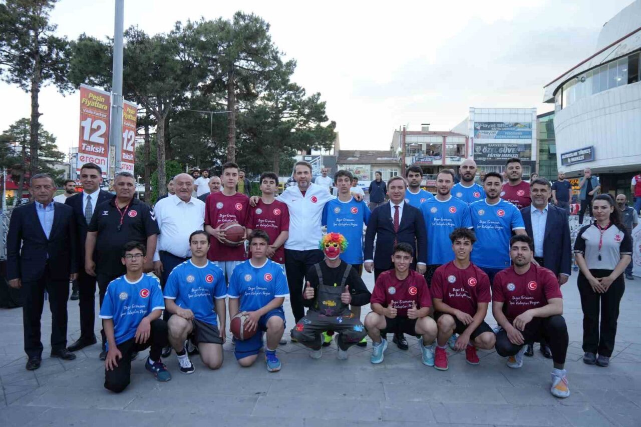 BAKAN BAYRAKTAR ARDINDAN GENÇLERLE BASKETBOL MAÇI YAPTI.
