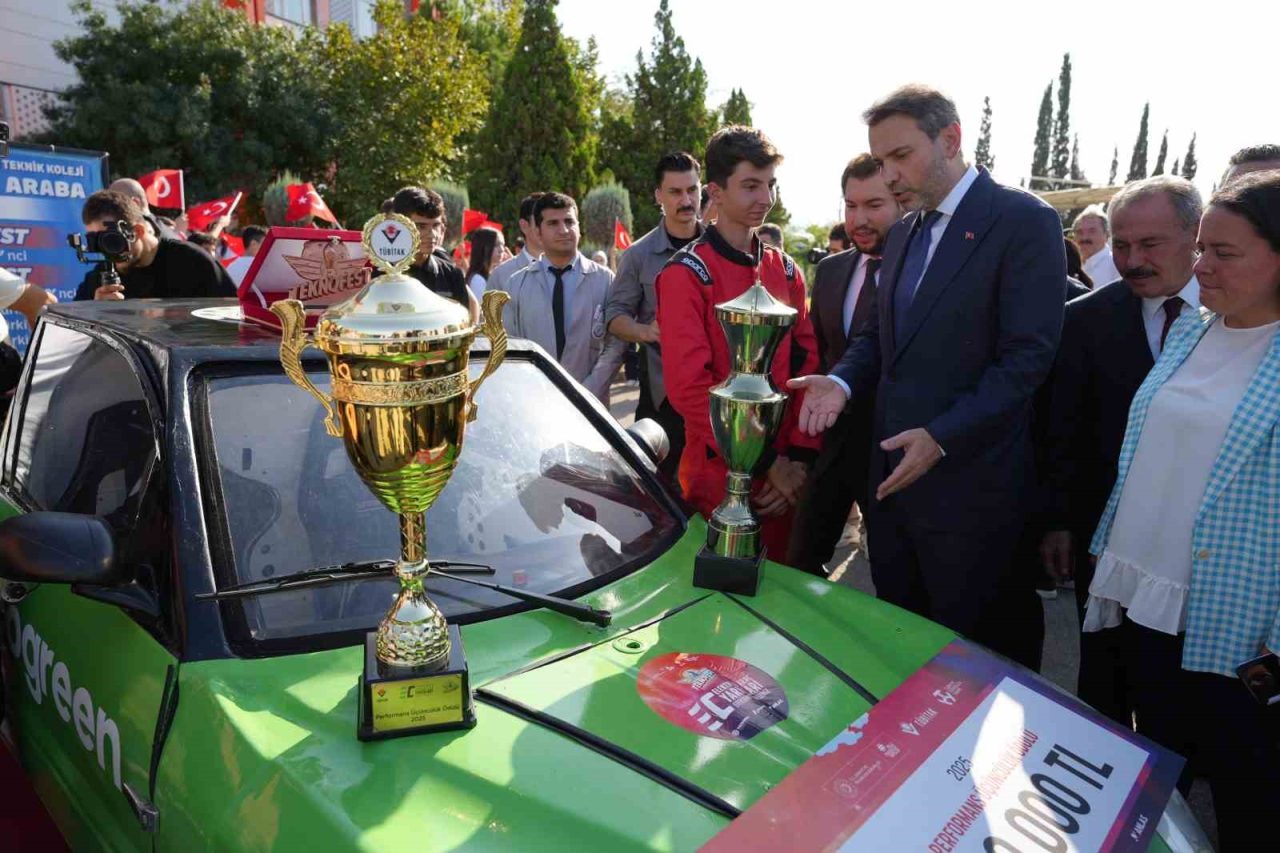 Bir dizi ziyaret kapsamında Denizli’ye gelen Enerji ve Tabii Kaynaklar Bakanı Alparslan Bayraktar, Denizli Organize Sanayi Bölgesi DOSTEK Koleji’ni ziyaret etti. Teknofest 2025’te 4 ana kategoride ödül alan öğrenciler, okula gelen Bakan Bayraktar’ı Ecogreen Enerji’nin destekleriyle ürettikleri elektrikli araç ile karşıladı. Enerji ve Tabii Kaynaklar Bakanı Bayraktar, burada gençlerden araç hakkında bilgi alarak bir süre sohbet etti, kolejin konferans salonunda sanayiciler, öğretmenler ve öğrenciler ile bir araya geldi.