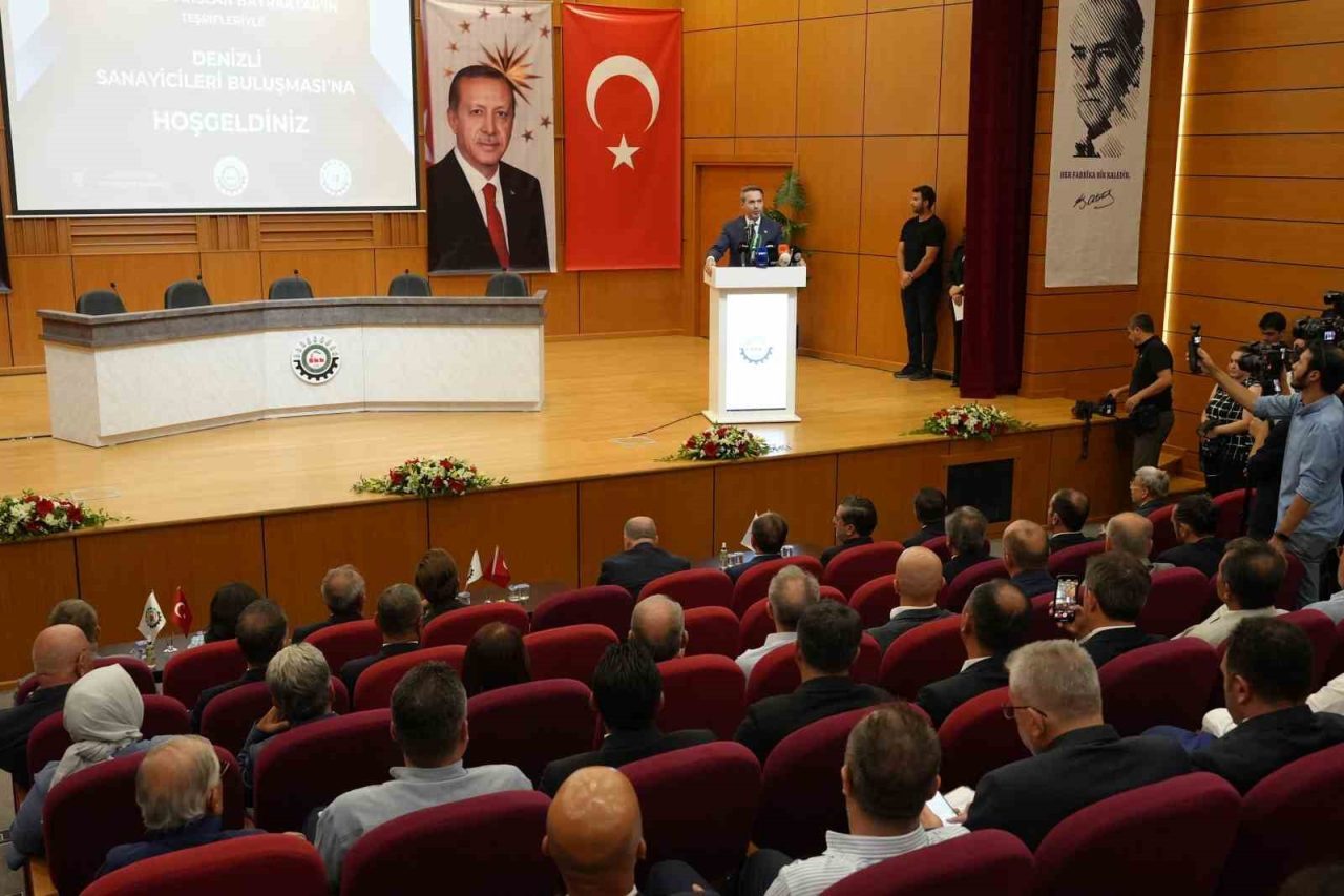 Denizli OSB Yönetim Kurulu Başkanvekili Osman Uğurlu, Denizli OSB’nin 5,6 milyon metrekare alan üzerine kurulu, 217 firmanın faaliyet gösterdiğini ve 30 bini aşkın çalışanının olduğunu ifade etti. Denizli OSB’nin yıllık 45 milyon metreküp doğalgaz tüketiminin, 77 megavat çatı tipi güneş enerji üretimi tesisi ile güçlü bir altyapıya sahip olduğunu ifade eden Uğurlu, “Yatırımına başladığımız güneş enerjisi üretim santrali tesisimizde enerji üretmeyi hedefliyor, maliyetlerimizi düşürürken, yeşil dönüşüme katkı sağlıyoruz. Dünya Bankası finansmanıyla inşa edilecek olan Gelişmiş Atık Su Arıtma Tesisimizle çevreye duyar üretim vizyonumuzun somut örneklerinden biridir. Ayrıca diğer odalarla beraber kuruyor olduğumuz Teknopark projemizle sanayimizi yüksek teknolojiyle buluşturacak girişimcilerimize ve gençlerimize güçlü bir Ar-Ge ortamı sunacağız. Burada buluştuğumuz DOSTEK Kolejimiz tamamen sanayicilerimizin ve Milli Eğitim Bakanlığımızın destekleriyle faaliyetlerini sürdüren ve bizler için ayrı bir gurur kaynağı olan eğitim kurumumuzdur. Yaklaşık bin 100 öğrencimizle sanayimizin ihtiyaç duyduğu nitelikli iş gücü yetiştiren okulumuz gençlerimizi geleceğin teknolojilerine hazırlamaktadır. Denizli OSB Sanayicileri olarak uluslararası pazarda rekabet gücümüzü artırmak ve yeşil dönüşünü gerçekleştirebilmek adına hal hazırda kapasitesini tamamen kullanıyor olduğumuz 77 megavatlık TEİAŞ bağlantı gücümüzün arttırılması ve hiçbir sanayicimizin çatısının boş kalmaması adına desteğinizi istiyoruz” dedi.
