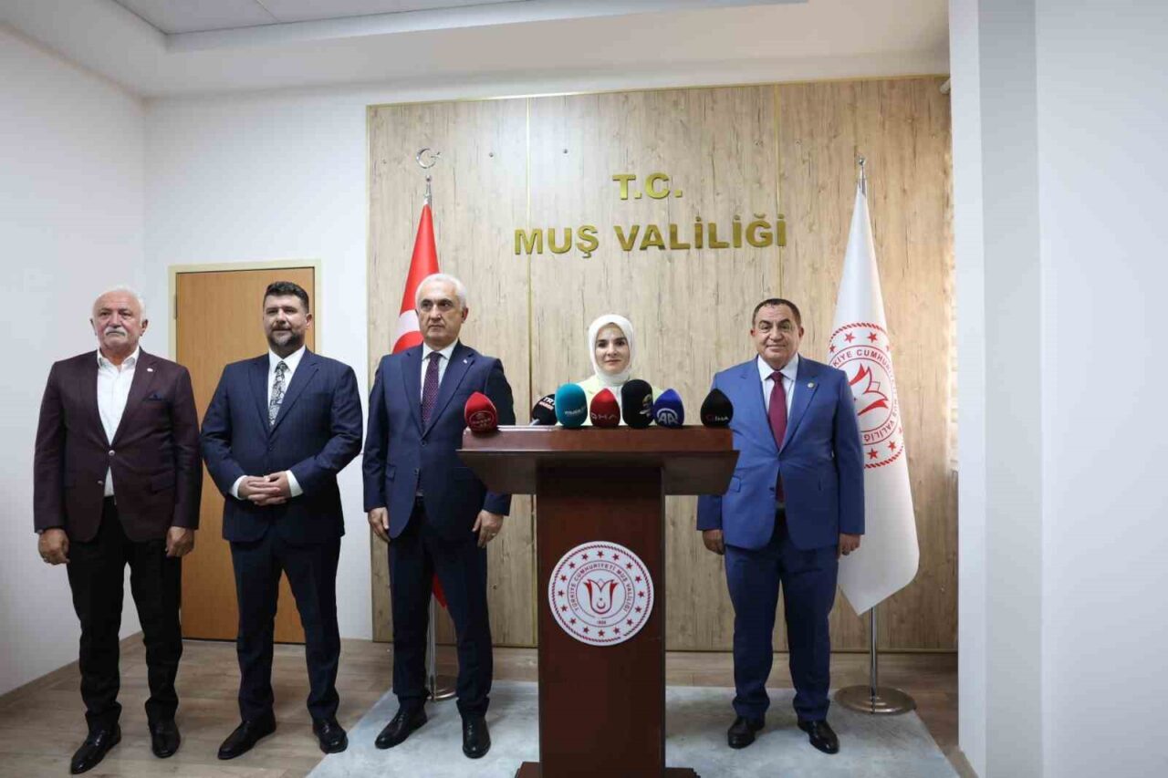 Çeşitli programlara katılmak üzere Şehit Yakınları ve Gaziler Genel Müdürü Muharrem Kurt ile Muş’a gelen Aile ve Sosyal Hizmetler Bakanı Mahinur Özdemir Göktaş, ilk olarak İl Jandarma Komutanlığı Sosyal Tesislerinde şehit aileleriyle buluştu. Ardından Valiliği ziyaret eden Bakan Göktaş, Vali Avni Çakır’dan kentte yürütülen yatırımlar ve hizmetler hakkında bilgi aldı. Bakan Göktaş, burada yaptığı açıklamada, Muş’ta bulunmaktan büyük mutluluk duyduğunu ifade ederek, “Bu toprakların ruhuna uygun şekilde hizmet etmeye gayret ediyoruz. Cumhurbaşkanımız Recep Tayyip Erdoğan’ın liderliğinde ecdadımızın mirasına sahip çıkıyoruz” dedi.