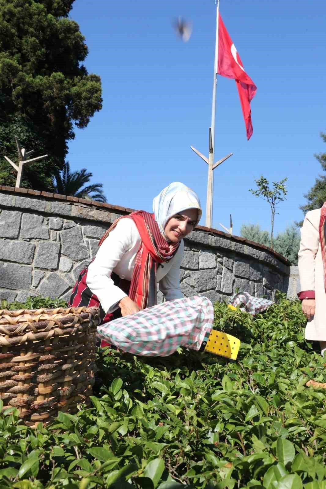 Göktaş, programları kapsamında Ziraat Botanik Çay Bahçesini de ziyaret ederek, yörenin en önemli geçim kaynağı olan çay tarlasına girdi. Burada kadın üreticilerle bir araya gelen Bakan Göktaş, bölgenin geleneksel kıyafeti olan peştemali giyip, eline çay makasını alarak çay hasadı yaptı.