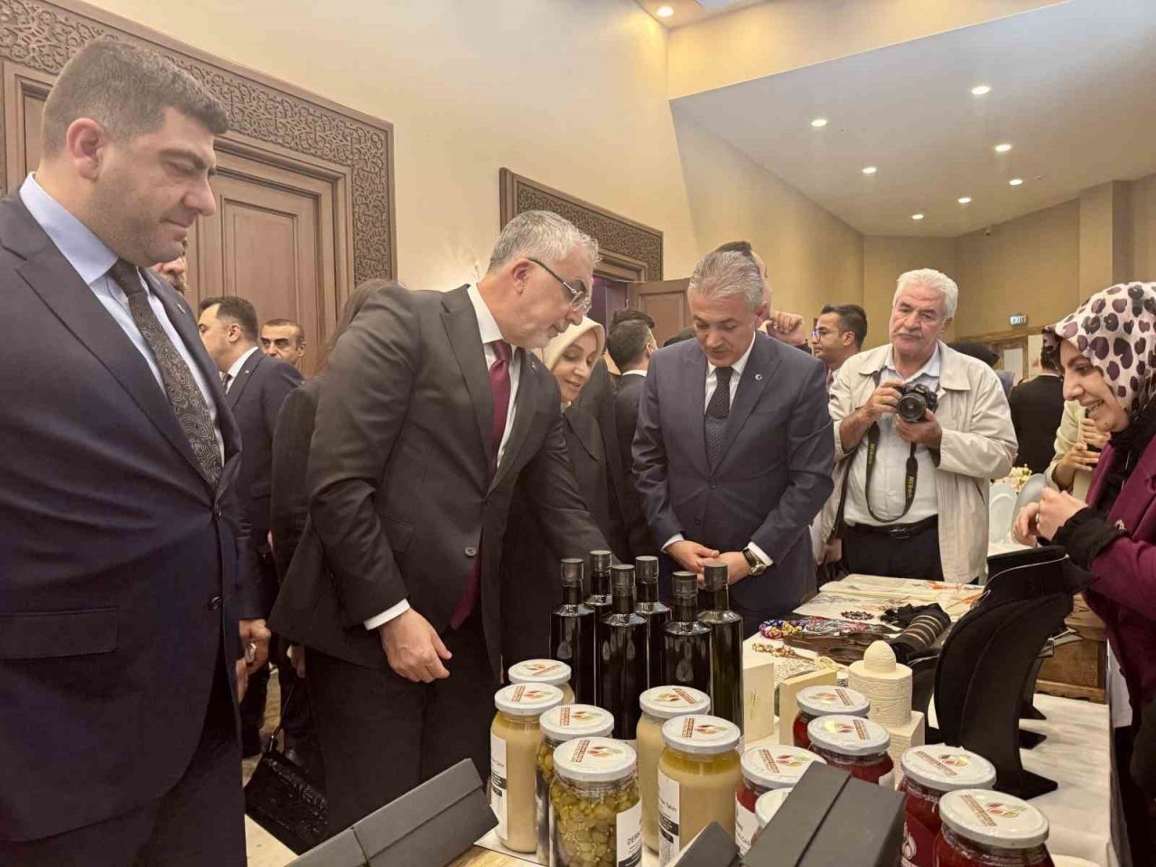 Konuşmalarının ardından en fazla kadın istihdamı sağlayan işletmelere plaket verildi. Bakan Işıkhan, daha sonra kadınların yaptığı el işi ürünlerin sergilendiği stantları gezdi.