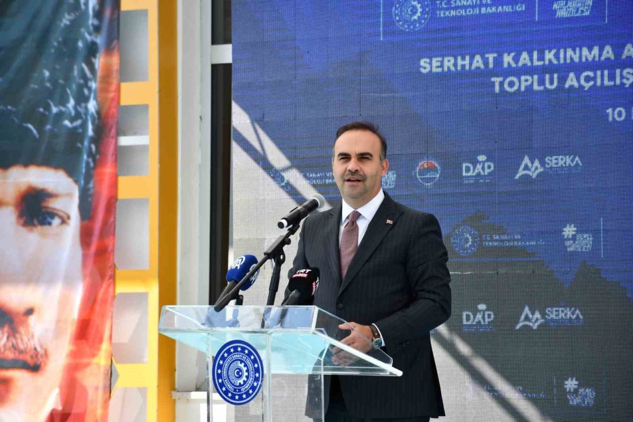 “Terörsüz Türkiye menzilindeki adımlarımızla terörü milletimizin gündeminden tümüyle çıkaracağız” diyen Bakan Kacır, “Tüm zorluklara rağmen Türk milletine hizmetten asla vazgeçmeyen böyle bir liderle yürümek yolumuz ne kadar zorlu olursa olsun gönlümüzü rahatlatıyor. Bugün çatışmaların, salgınların, iklim krizinin, enerji ve gıda arz güvenliğine yönelik tehditlerin pençesinde dünya köklü bir dönüşümden geçiyor. Küreselleşme ve ticarette liberalleşme terk ediliyor. Üretimde ve teknoloji geliştirmede stratejik özerklik ulusal egemenliğin vazgeçilmez bir parçası haline geliyor. Teknolojik yetkinlik yarışının bir teknolojik savaşa dönüşmekte olduğu artık sır değil. Kendi teknolojisini üretmeyen özerk yeterliliğini sağlayamayan ülkelerin ayakta kalamayacağı bir döneme adım attık. Böylesi bir tabloda Türkiye güçlü üretim altyapısı ve teknoloji geliştirme kapasitesiyle hem sahada etkin hem masada söz sahibi bir ülkedir. Şüphesiz ki Türkiye Yüzyılında daha büyük ve daha güçlü bir Türkiye’yi ancak birlik ve beraberliğimizi güçlendirirsek kurabiliriz. Cumhur İttifakı olarak başlattığımız ve devlet politikası olarak sürdürdüğümüz Terörsüz Türkiye menzilindeki adımlarımızla terörü milletimizin gündeminden tümüyle çıkaracağız. Milletimizin yüreğine örülen duvarları birlikte yıkacak aydınlık bir geleceği el ele inşa edeceğiz. Huzur ve güven iklimiyle bölgemizde büyük yatırımlar filizlenecek istihdam artacak, üretim büyüyecek, Türkiye Yüzyılında yeni başarı hikâyelerini hep birlikte yazacak ülkemizi yeni kazanımlarla inşallah daha ileriye taşıyacağız” diye konuştu.