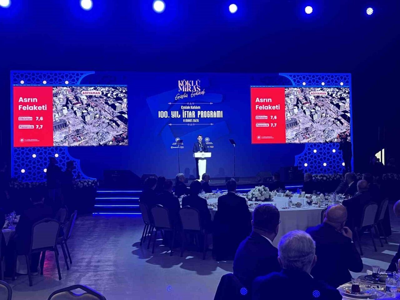 Çevre, Şehircilik ve İklim Değişikliği Bakanı Murat Kurum, Emlak Katılım’ın düzenlediği 100’üncü Yıl İftar Programı’na katıldı. Bakan Kurum, “Cumhurbaşkanımızın liderliğinde devlet ve millet el ele vererek, asrın felaketini, asrın dayanışmasına dönüştüren büyük bir seferberlik başlattık. Kendisini ülkesine ve afetzede kardeşlerine adayan 200 bin mimar, mühendis ve işçi kardeşlerimizle gece gündüz demeden çalıştık. Rekor bir hızla saatte 23, günde 550 konut üreterek iki yılın sonunda 455 bin konutu inşa ettik” dedi.