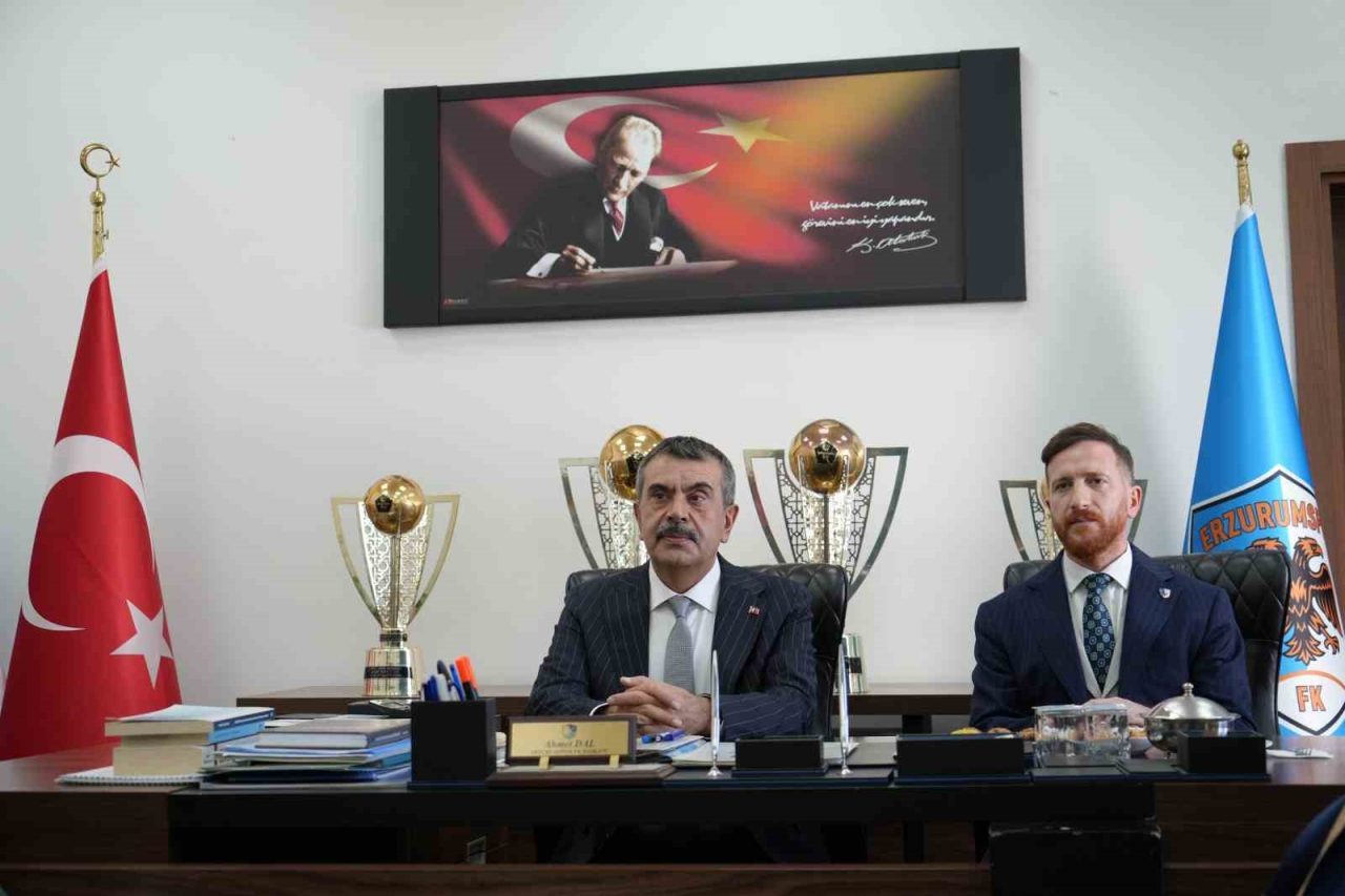Evyap İbrahim Hakkı Fen Lisesi açılış töreni sonrası Erzurumspor Tesislerine gelen ve burada Kulüp Başkanı Ahmet Dal tarafından karşılanan Milli Eğitim Bakanı Yusuf Tekin, U16 ve profesyonel takım futbolcularıyla bir araya geldi. Bakan Tekin’e Erzurumspor ziyaretinde Vali Mustafa Çiftçi, Büyükşehir Belediye Başkanı Mehmet Sekmen, Gençlik ve Spor Müdürü Levent Çakmur ve AK Parti İl Başkanı İbrahim Küçükoğlu’da eşlik etti. Kulüp Başkanı Ahmet Dal ile bir süre makamında görüşen Bakan Tekin’e, mavi-beyazlı takımın atkısı hediye edildi. Bakan Tekin, daha sonra antrenman sahasına geçerek teknik direktör Serkan Özbalta ve futbolcularla bir araya geldi, hatıra fotoğrafı çektirdi. Bakan Tekin, Erzurum Büyükşehir Belediyesi’ne bağlı olan ERKONUT’u ziyaret etti. Başkan Sekmen konu ile ilgili yaptığı açıklamada, “Şehrimizin kalkınması ve vatandaşlarımıza daha iyi yaşam alanları sunmak için yapılan çalışmalarımızı yakından inceledik. Erzurum’umuzun gelişimi için çalışmalarımız devam ediyor ” dedi.