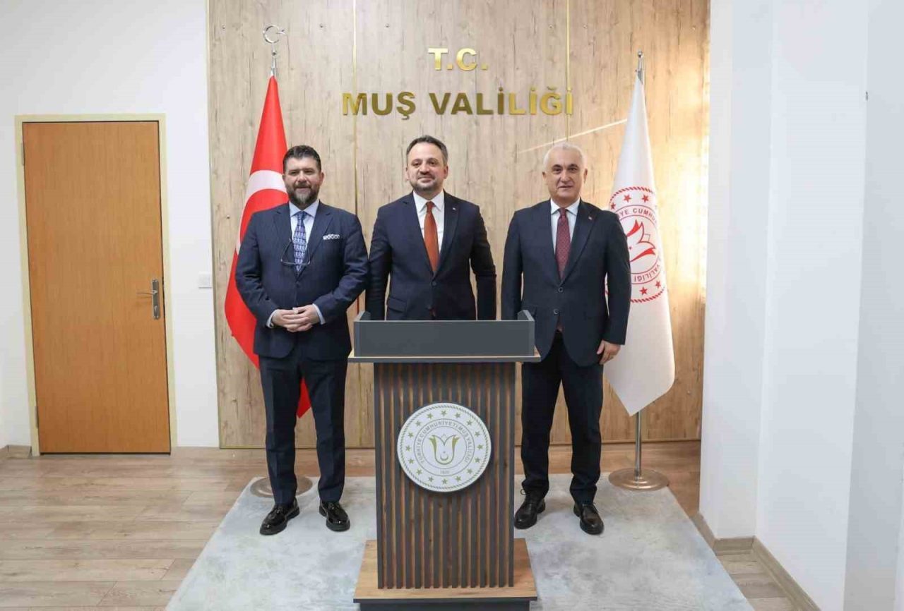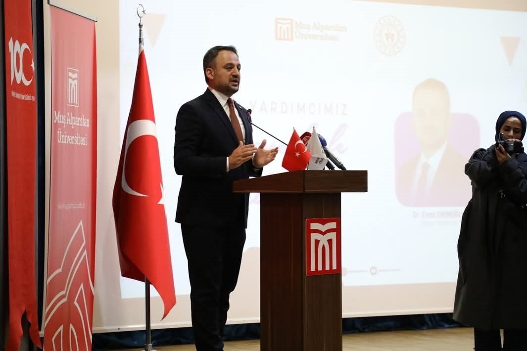 Gençlik ve Spor Bakan Yardımcısı Eminoğlu, ziyaret ve programlara katılmak üzere geldiği Muş’ta bir dizi temaslarda bulunarak üniversite öğrencileriyle bir araya geldi. Muş’taki programı kapsamında ilk olarak Muş Valiliğini ziyaret eden Eminoğlu, Valilik Şeref Defteri’ni imzaladı. Ardından Muş Valisi Avni Çakır ile makamında bir süre görüşen Eminoğlu, daha sonra AK Parti İl Başkanlığı binasına geçerek İl Başkanı Melik Emre ve partililerle buluştu. Eminoğlu, daha sonra üniversitede düzenlenen “Bakan Yardımcımız Öğrencilerle Buluşuyor” programına katıldı. Saygı duruşu ve İstiklal Marşı’nın okunmasıyla başlayan programda öğrencilere hitap eden Eminoğlu, Gençlik ve Spor Bakanlığı’nın yaklaşık 100 bin çalışanıyla gençlere hizmet verdiğini ifade etti.