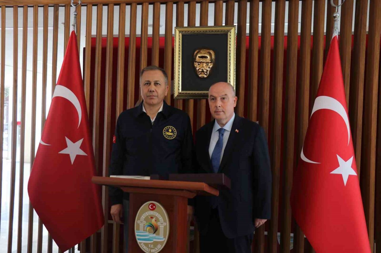 Denizli’de Güvenlik ve Asayiş Toplantısına katılan İçişleri Bakanı Ali Yerlikaya, Denizli Valisi Ömer Faruk Coşkun, İl Emniyet Müdürü Yavuz Sağdıç, İl Jandarma Komutanı Kıdemli Albay Hıdır Ayçiçek ve sorumlu birim amirleri katıldı. Güvenlik ve Asayiş Toplantısının ardından İçişleri Bakanı Ali Yerlikaya Denizli Valiliğini ziyarette bulundu. Valilik anı defterini imzalayan Bakan Yerlikaya, daha sonra Denizli Valisi Ömer Faruk Coşkun’dan bilgiler aldı. Denizli Valiliğindeki ziyaretin ardından İçişleri Bakanı Ali Yerlikaya, AK Parti Denizli İl Başkanlığını ziyaret ederek burada partililer ile buluştu. Denizli’ye bugüne kadar 117 milyar lirayı aşkın kamu yatırımı yapıldığını ifade eden İçişleri Bakanı Ali Yerlikaya, bu yatırımların 1 milyar 471 milyon lirası son kabine döneminde olmak üzere 3,5 milyar lirası İçişleri Bakanlığı yatırımı olduğunu ifade etti. Denizli Valiliği, 4 ilçenin Hükümet Konakları, 13 Emniyet Hizmet Binası, Kale İlçe Jandarma Komutanlığı, AFAD Hizmet Binası ve AFAD Lojistik Deposunun tamamlandığını belirten Bakan Yerlikaya, “Pamukkale Hükümet Konağı, Çivril ve Buldan İlçe Emniyet Müdürlüğü binaları ve Denizli İl Jandarma Komutanlığı ek binası inşaatı devam etmektedir” dedi.