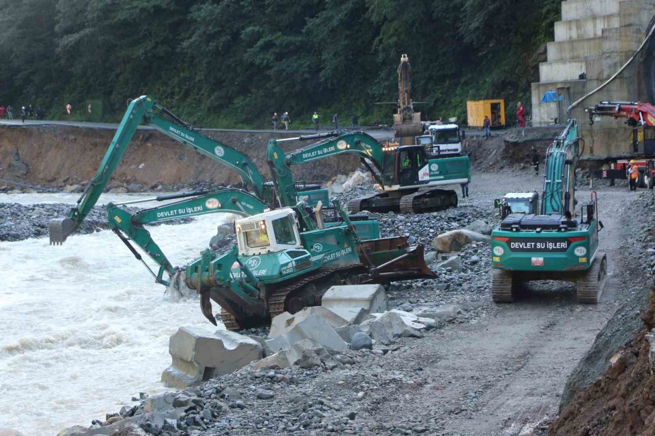 Ekipler, kapanan yolu açmak için yoğun çaba sarf ederken, yapımı süren Rize Şehir Hastanesi inşaatında kullanılan c blok ve antifer bloklar dere yatağına yerleştirilerek dolgu malzemesi olarak değerlendirilmeye başlandı. Devlet Su İşleri (DSİ) öncülüğünde yürütülen çalışmaların kısa sürede sonuç vermesi ve yaylada mahsur kalan vatandaşların tahliye edilmesi hedefleniyor. Sabah saatlerinde bölgeye giden Ulaştırma ve Altyapı Bakanı Abdulkadir Uraloğlu ile Gençlik ve Spor Bakanı Osman Aşkın Bak da bölgede incelemelerde bulunarak alternatif yol oluşturulması için çalışmaların devam ettiğini bildirdi.