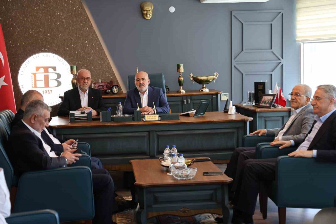 İÇİŞLERİ BAKAN YARDIMCISI MEHMET SAĞLAM, MİLLİ SAVUNMA BAKAN YARDIMCISI ŞUAY ALPAY VE HEYETİ ELAZIĞ TİCARET BORSASI’NI ZİYARET ETTİ. BORSA BAŞKAN MEHMET ALİ DUMANDAĞ, YENİ HAYVAN PAZARI VE BESİ OSB PROJELERİNDE SONA GELİNDİĞİNİ, YIL SONUNA KADAR HİZMETE AÇILACAĞINI AÇIKLADI