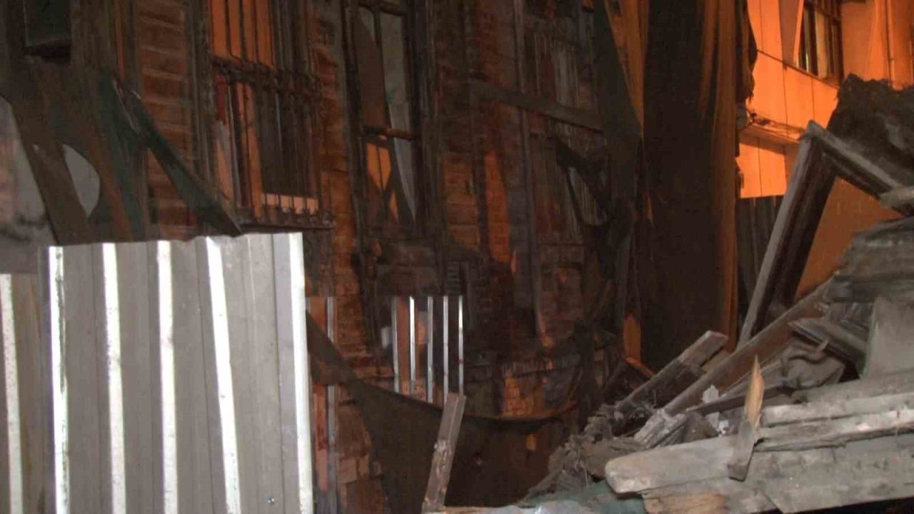 Bakırköy’de boş olan tarihi ahşap bir binada çökme meydana geldi.