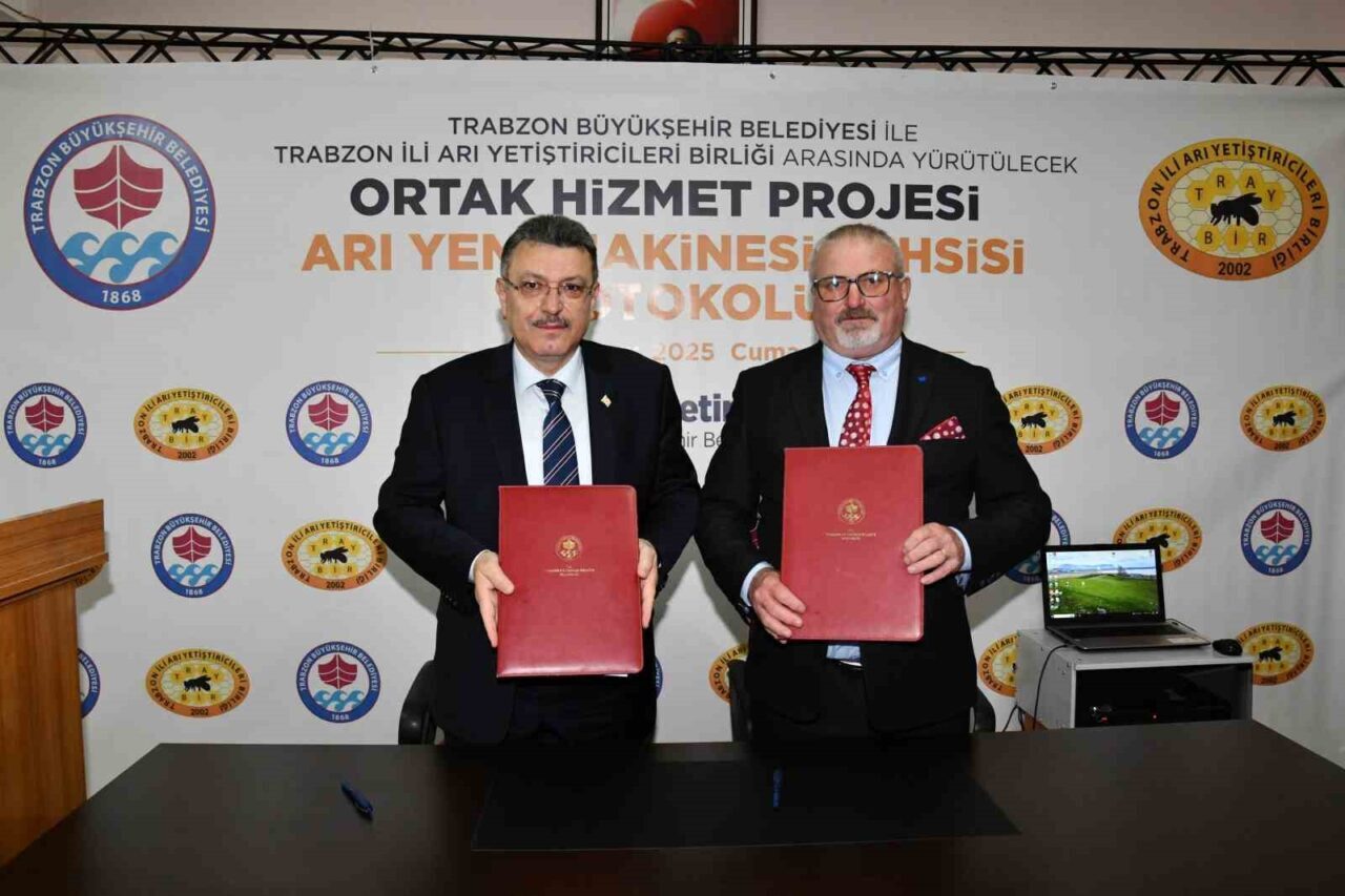 Trabzon Büyükşehir Belediyesi ile Trabzon Arı Yetiştiricileri Birliği arasında Ortak Hizmet Projesi kapsamında Arı Yemi Makinesi Tahsisi Protokolü imza ve açılış töreni düzenlendi.