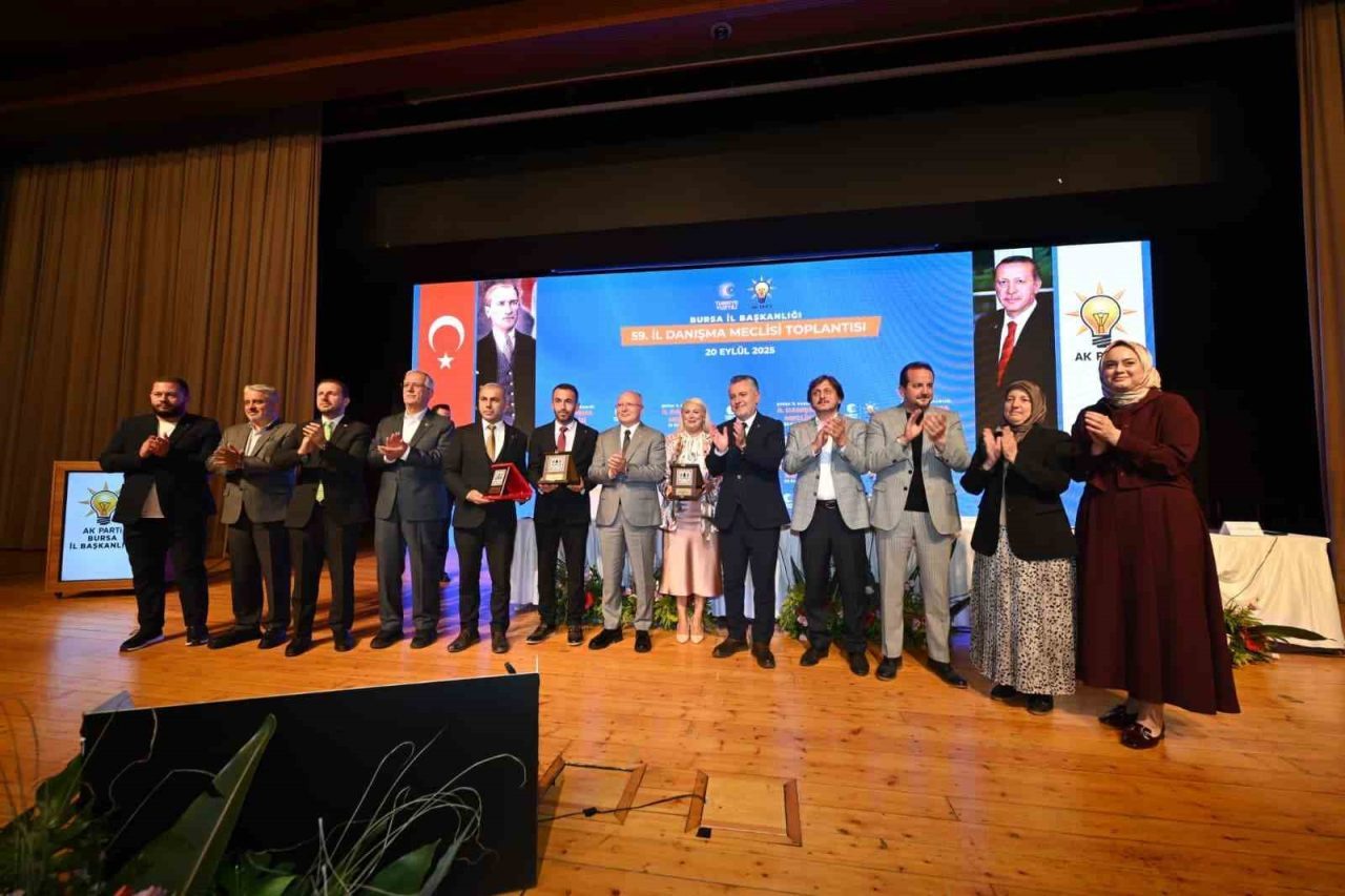 AK Parti Bursa İl Başkanlığı’nın 59. kez düzenlediği İl Danışma Meclisi, Merinos Atatürk Kongre ve Kültür Merkezi’nde yoğun katılımla gerçekleşti. Milletvekilleri, belediye başkanları, ilçe başkanları, ana kademe, kadın ve gençlik kolları ile meclis üyelerinin de hazır bulunduğu toplantıda birlik ve beraberlik mesajları verildi. Önceki dönem milletvekilleri, belediye başkanları ve parti yöneticilerinin de katıldığı yerel yönetimler gündemli toplantıda yeni üye çalışmaları kapsamında en çok üye kazandıran teşkilat mensuplarına da plaket takdim edildi. AK Parti Bursa İl Başkanı Davut Gürkan’ın gündeme dair değerlendirmelerinin ardından Yıldırım Belediye Başkanı Oktay Yılmaz ve Gürsu Belediye Başkanı Mustafa Işık ilçelerinde gerçekleştirdikleri yatırım ve projeleri anlattı.