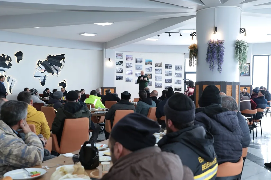 Bayburt Belediyesi Bamsı Beyrek Seyir Terası’nda gerçekleşen toplantıda yaptıkları büyük özverili çalışmalardan dolayı personeline teşekkür eden Başkan Memiş, “Öncelikle misafirlerimizden başlıyorum. Bu süreçte bizimle kendi işlerinde çalıştıklarından daha çok gayretle çalıştılar, emek verdiler. Hepsine ayrı ayrı teşekkür ediyorum. Hepinizden Allah razı olsun. Bu sürecin başladığı günden yani 24 Kasım 2024 saat 15.00’ten bugüne kadar birlikte mesai yaptığımız Kıymetli Başkan Yardımcılarımız, Nesimuttin Selçuk, müdürlerimiz, personelimiz büyük bir gayret gösterdi. Gerçekten bir çalışma ancak bu kadar yapılabilirdi. Yapılması gereken her şey yapıldı. Eksik olan muhakkak olacaktır. Ve bu süreçte araçların başında operatör olarak çalışan arkadaşlarımız, belediyemizin personeli, sokakta temizlik yapanlar, kaldırım temizleyenler hülasa belediyemizin bütünü burada olan ve olmayan, sokakta olan ve olmayan hepinize ayrı ayrı yürekten, candan, en samimi duygularımla teşekkür ediyorum. Allah hepinizden tekrar tekrar razı olsun.” Dedi.