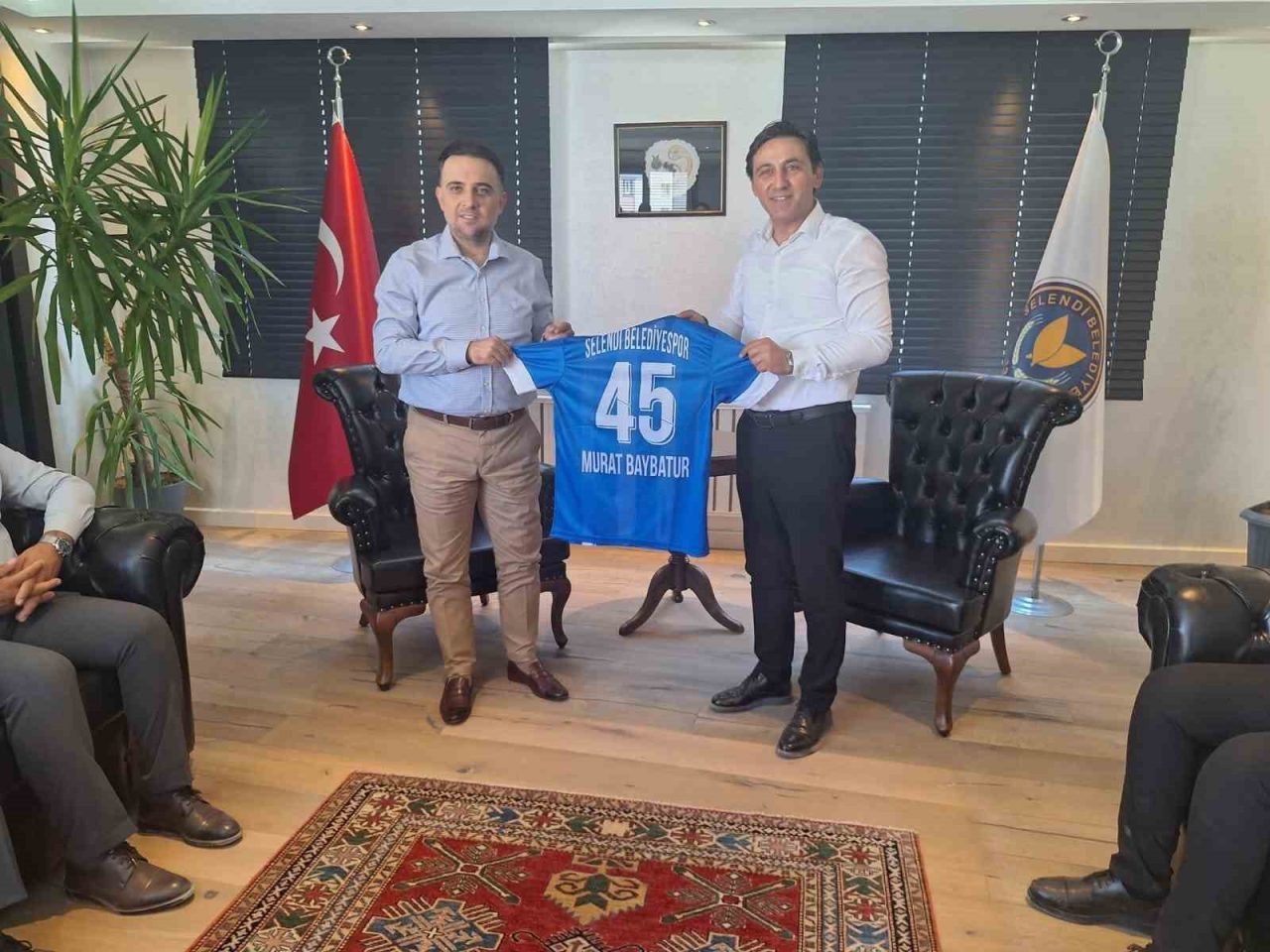 Hükümet Konağı inşaatında da incelemelerde bulunan Baybatur, son olarak Selendi Belediye Başkanı Murat Daban’ı makamında ziyaret etti. İlçeye yapılacak yatırımların değerlendirildiği toplantının ardından Başkan Daban, Baybatur’a Selendi Belediyespor forması hediye etti.