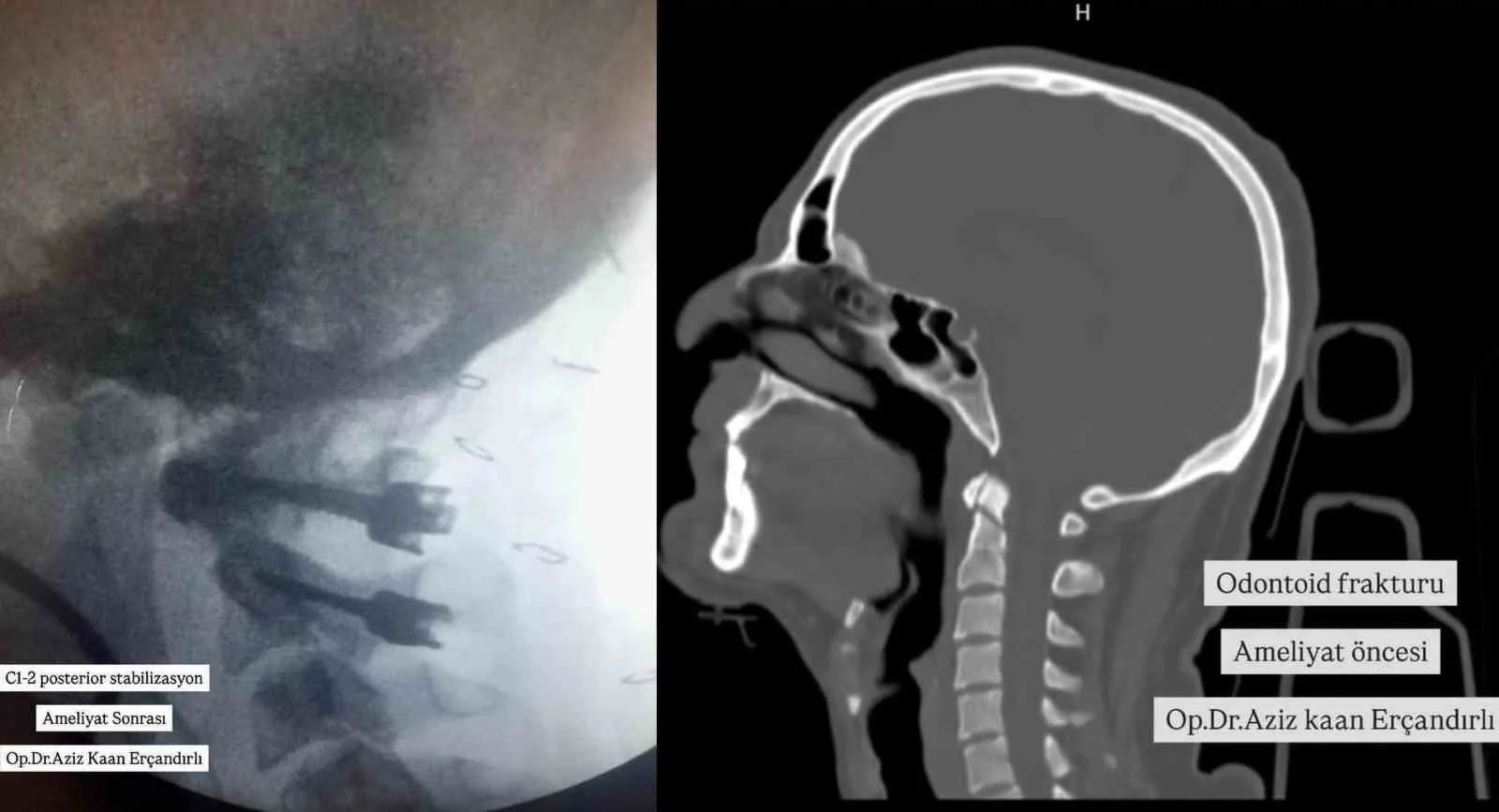 Konuya ilişkin hastanenin sosyal medya hesabı üzerinden yapılan açıklamada, “Bu hastamızda yüksekten düşme sonrası odontoid tip 2 kırığı olması üzerine Bayburt’ta ilk defa C1-2 posterior stabilizasyon yapıldı. Odontoid çıkıntı, kafatabanı ve boyun bileşkesi geniş hareket becerisi açısından önemli bir parçasıdır. Böylesi geniş hareket aralığı ile birlikte stabilitenin idamesi de ayrı bir özellik taşımaktadır. Bu yüzden odontoid kırıkları servikal kırıklar içinde önemli bir yere sahiptir. Çoğunluğu yüksek enerjili travmalarla oluşur ve sıklıkla zorlayıcı fleksiyon ve/veya ekstansiyon hareketleri sonucu oluşmaktadır. Boyun Kırığı Ameliyatı Beyin ve Sinir Cerrahisi Uzmanımız Aziz Kaan Erçandırlı tarafından başarılı bir şekilde gerçekleştirilmiştir.” ifadelerine yer verildi.
