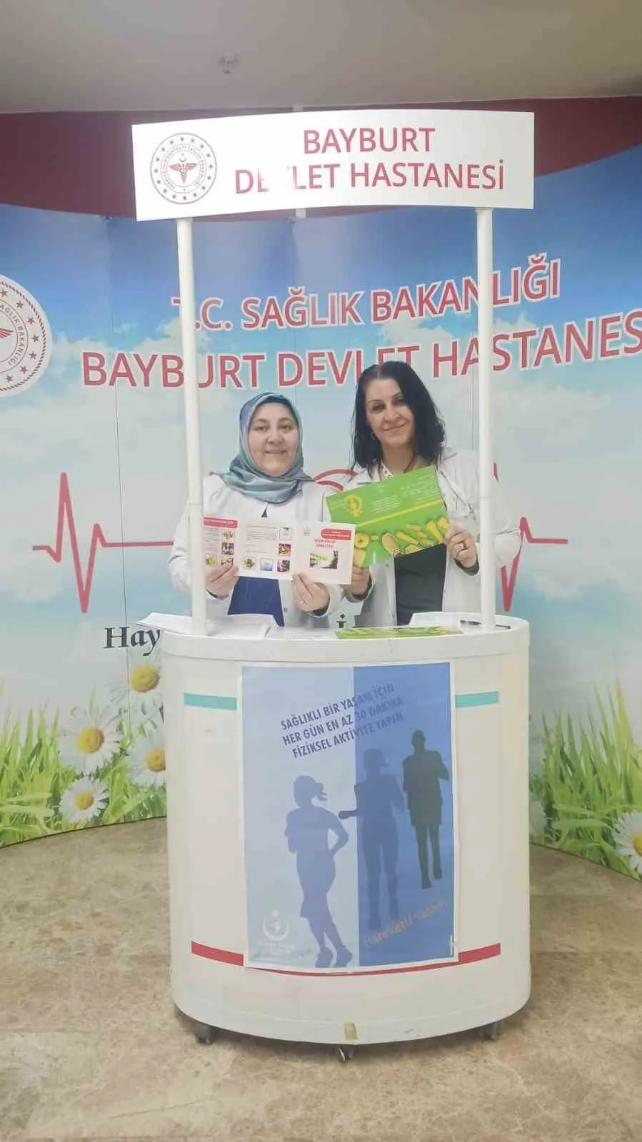 Bayburt Devlet Hastanesinde obeziteye dikkat çekmek amacıyla stant açıldı, stantta obeziteye neden olan etkenler ve beraberinde yaşanan sağlık sorunları anlatıldı.
