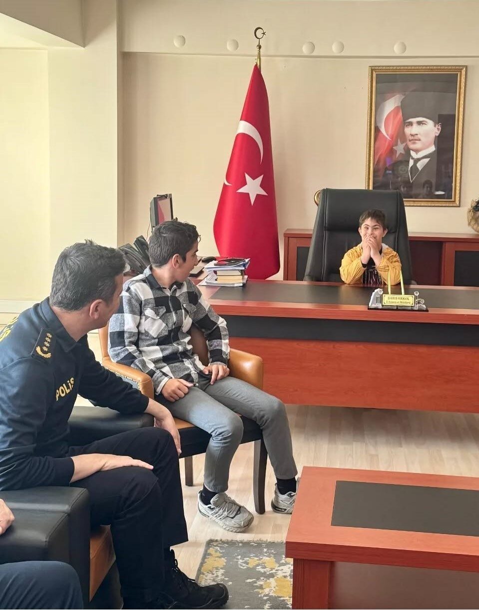 Akran Akademi Özel Eğitim ve Rehabilitasyon Merkezinde eğitim gören özel öğrenciler, öğretmenleriyle birlikte İl Emniyet Müdürlüğünde ağırlandı. İl Emniyet Müdürü Barış Erkol, makamında ağırladığı özel öğrencilerle sohbet ederek, yakından ilgilendi. Makam koltuğunu temsili olarak öğrencilere devreden Erkol, okul yönetimine ve öğrencilere nazik ziyaretlerinden ötürü teşekkür etti. Emniyetin çeşitli birimlerini gezen öğrenciler, ekiplerin kontrolünde polis otosuna bindirildi, telsizden ekiplere anons geçti. Günün anısına çekilen hatıra fotoğrafıyla son bulan ziyarette Erkol, öğrencilere çeşitli hediyeler takdim etti.