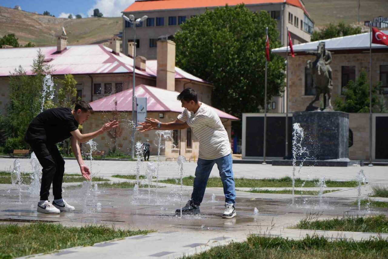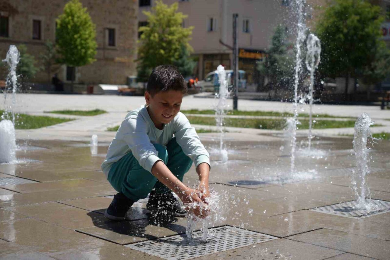 Bayburt’ta beklenen yaz sıcakları nihayet yüzünü gösterdi. Hava sıcaklığının 34-35 dereceye ulaşmasıyla birlikte vatandaşlar serinlemek için çeşitli yollara başvurdu. Özellikle Saray Bahçesi Kent Meydanı’ndaki fıskiyeler, çocuklar ve gençler için adeta bir oyun alanına dönüşürken, kimi vatandaşlar dondurma yiyip limonata içerek, kimi vatandaşlar ise şehirdeki çeşmelerde yüzlerini yıkayarak serinlemeye çalıştı.