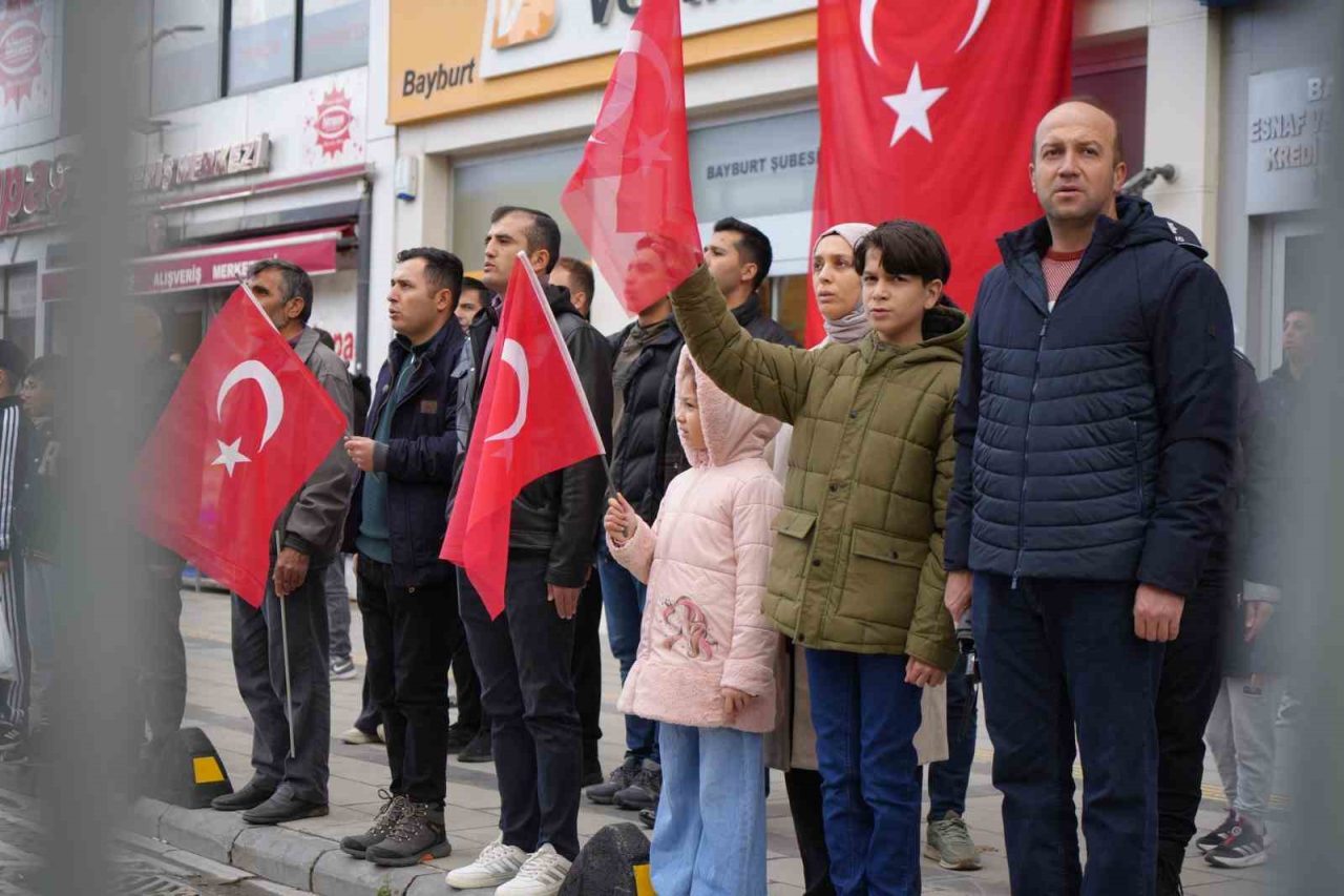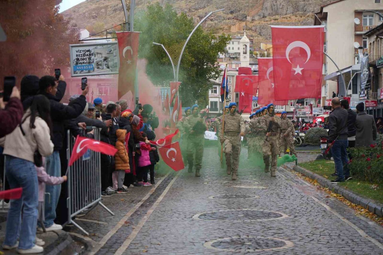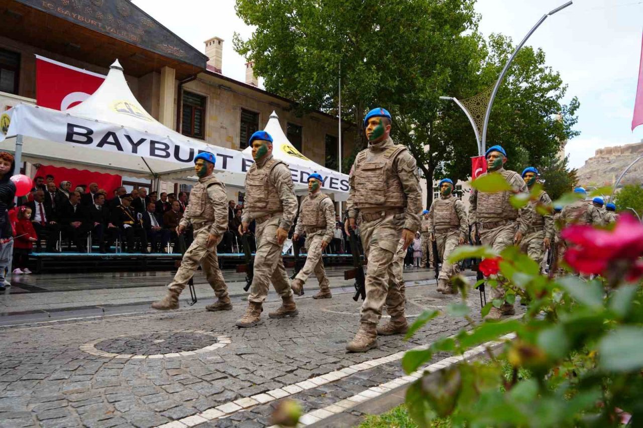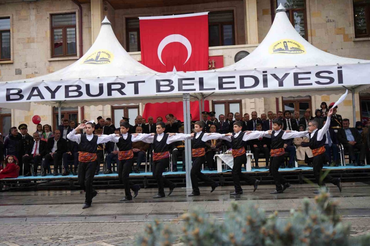 Cumhuriyet’in kuruluşunun 102’nci yıl dönümü, Bayburt’ta coşkulu törenle kutlandı. Cumhuriyet Caddesi’nde düzenlenen programda Bayburt barları oynandı, şiirler okundu, Jandarma Asayiş Komando Bölük Komutanlığı tarafından tüfekli hareketler gösterisi sergilendi.