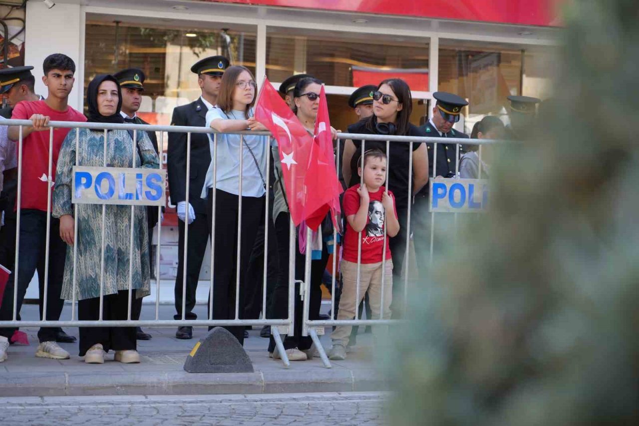 30 Ağustos Zafer Bayramı programı, Cumhuriyet Caddesi’ndeki resmi törenle sürdü. Vali Mustafa Eldivan, Garnizon Komutanı Albay Abdullah Hakan Kasım ve Belediye Başkanı Mete Memiş, halkın ve askerlerin bayramını kutladı. Ardından saygı duruşunda bulunuldu, İstiklal Marşı okundu.