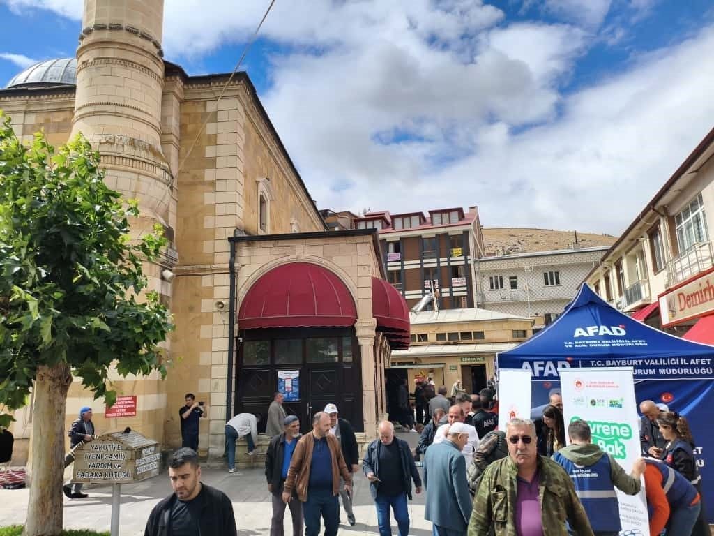 Bayburt İl Müftülüğünün katkılarıyla cami ve Kur’an kurslarında namaz öncesinde afet farkındalığı sohbetleri düzenlendi. Yakutiye Camii’nde cemaate ’Afet Farkındalığı ve İklim Değişikliği’ konularında vaaz verildi. Caminin avlusunda AFAD gönüllüleri tarafından kurulan stantta broşür dağıtılarak, bilgilendirme yapıldı.