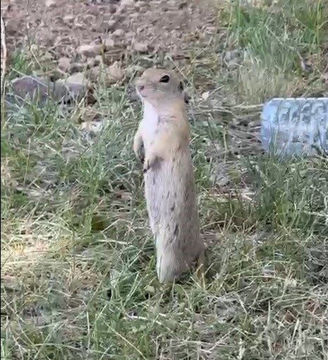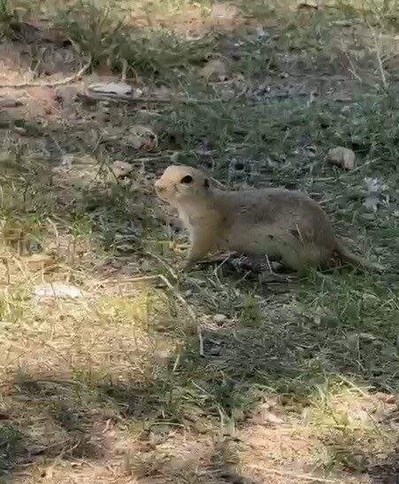 Bayburt’un Demirözü ilçesinde daha önce bisküvi yerken kameralara yansıyan Anadolu yer sincabı, bu kez arazide yiyecek ararken görüntülendi.