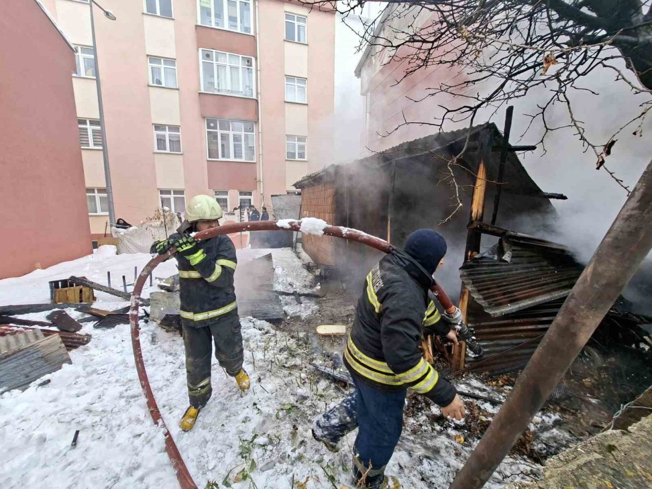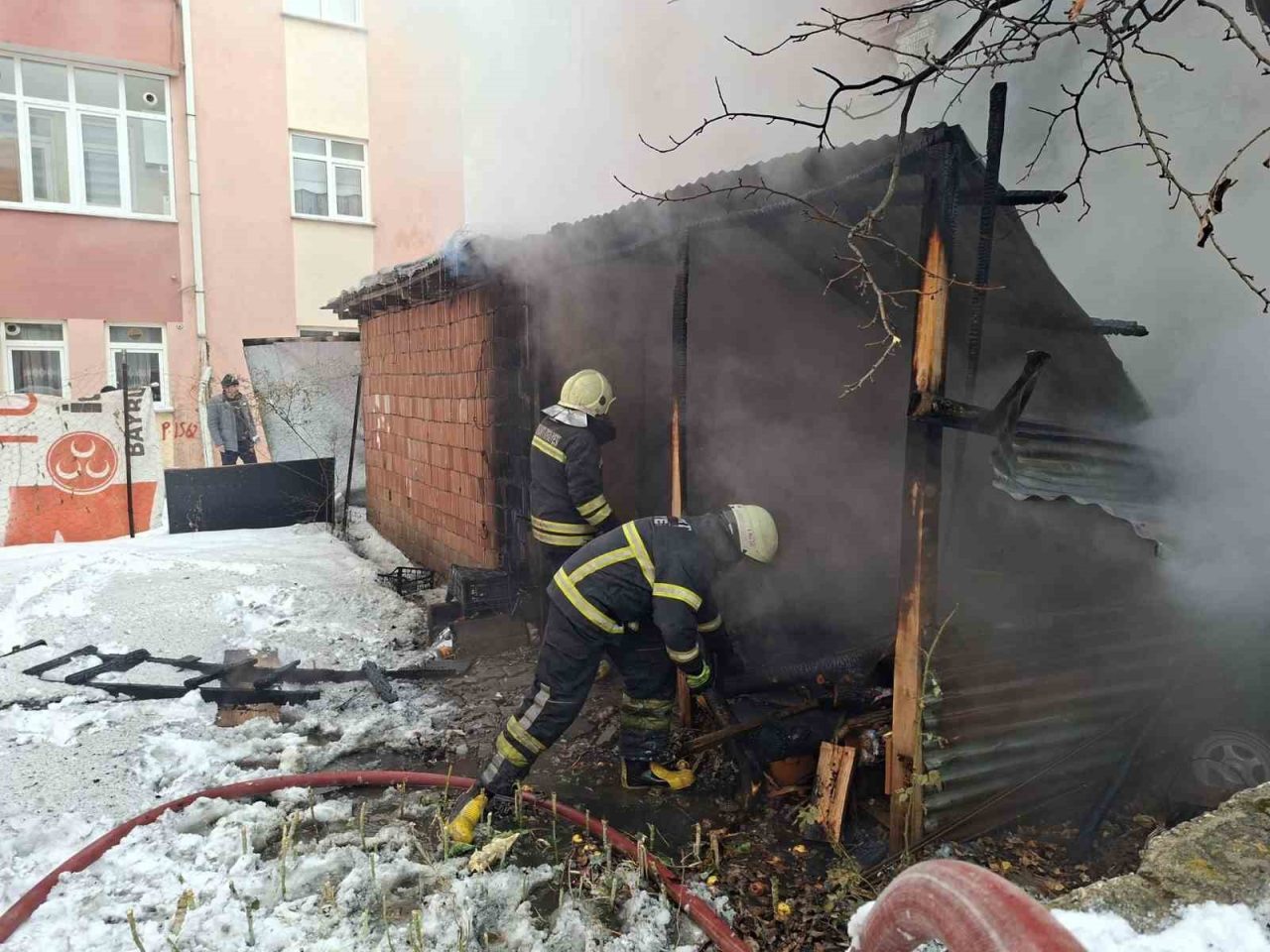 Bayburt’un Genç Osman Mahallesi’nde garaj ve depo olarak kullanılan bir alanda çıkan yangın, itfaiye ekiplerinin müdahalesiyle söndürüldü.