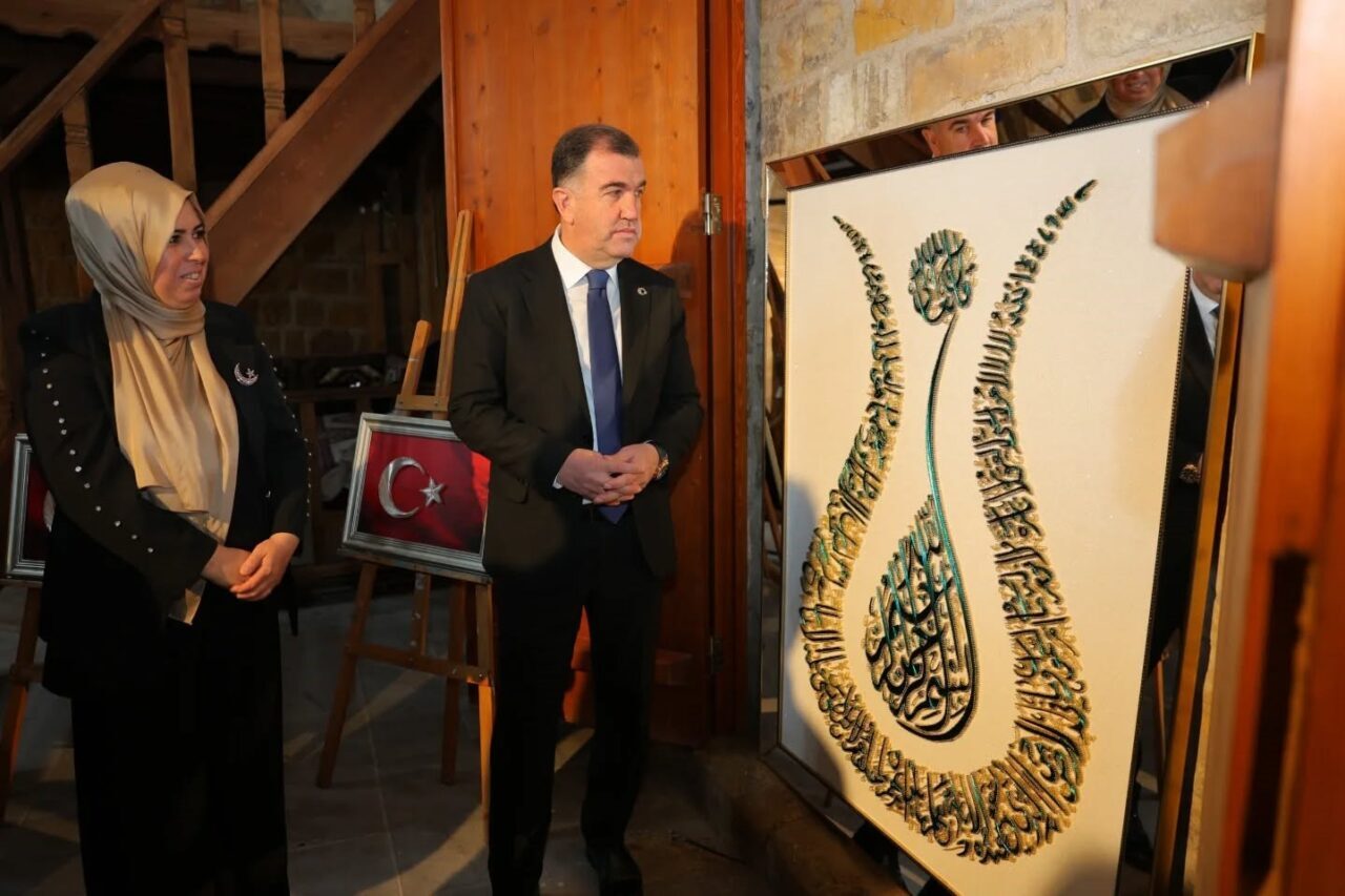 Taşhan Sanat Galerisi’nde açılan sergide, köklü kültürün izlerini taşıyan Türk el sanatlarının en zarif örnekleri olan filografi, rölyef ve tel kırma çalışmaları yer aldı. Açılışın ardından sergiyi ilgiyle gezen protokol üyeleri, eser sahiplerinden çalışmaları hakkında bilgi aldı. Vali Eldivan, Bayburt Sultan Fahriye Kız Yurdu El Sanatları Kursu eğitmeni Suna Onur’a, Bayburt Gençlik Merkezi El Sanatları Kursu eğitmeni Gül Sansu’ya, kursiyer öğrencilere ve emeği geçen herkese teşekkür ederek, başarılı çalışmalarından dolayı tebrik etti.