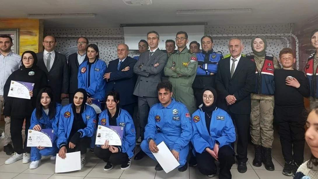 Bayburt İl Milli Eğitim Müdürü Ömer Faruk Kahraman ve Türk Hava Kurumu Erzurum Şube Başkanlığı temsilcilerinin de katıldığı etkinlikte, Havacılık Kulübü öğrencilere model uçak sertifikalarını takdim etti.