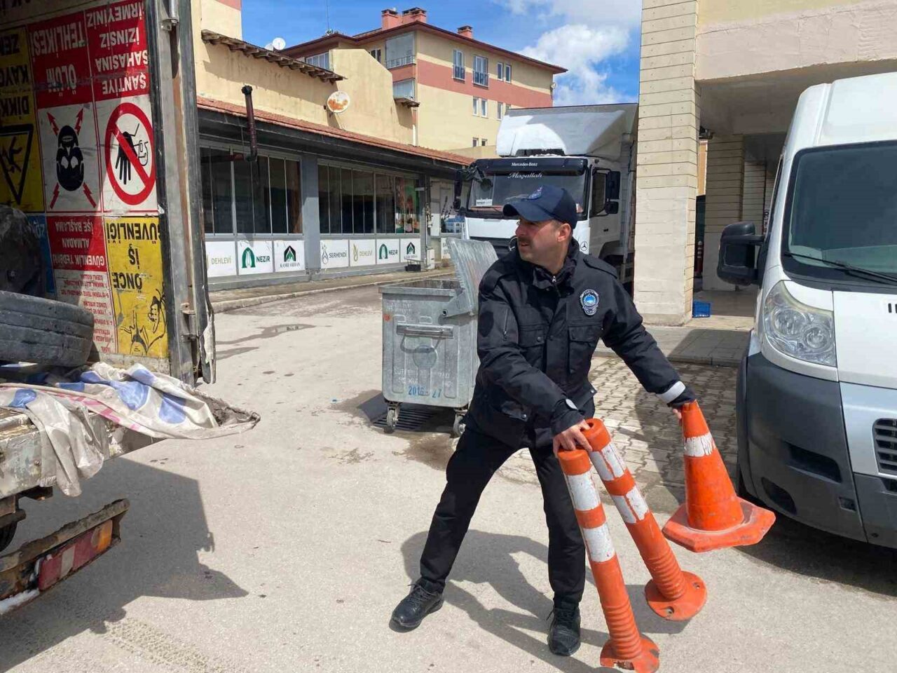 Denetimlerde, kaldırımları işgal ettiği ve araç parkını engellediği belirlenen duba, bayrak ve flamalar ekipler tarafından toplandı.