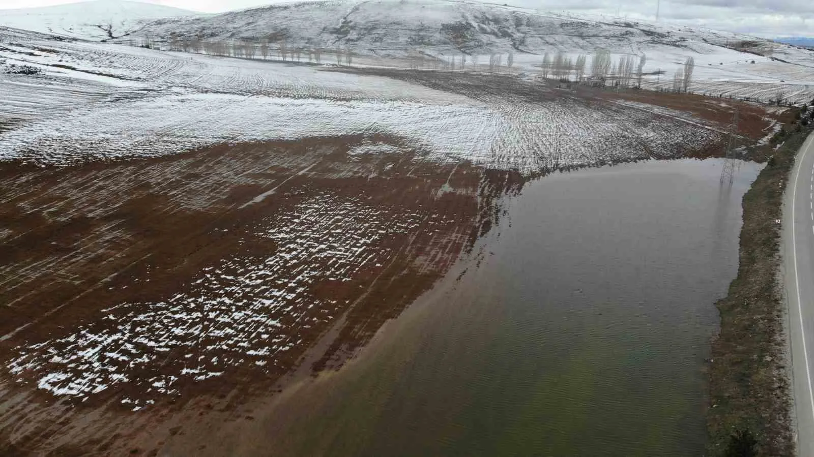 BAYBURT’TA KAR VE KAR SULARI ALTINDA KALAN TARLALARDA GÖLLER OLUŞTU